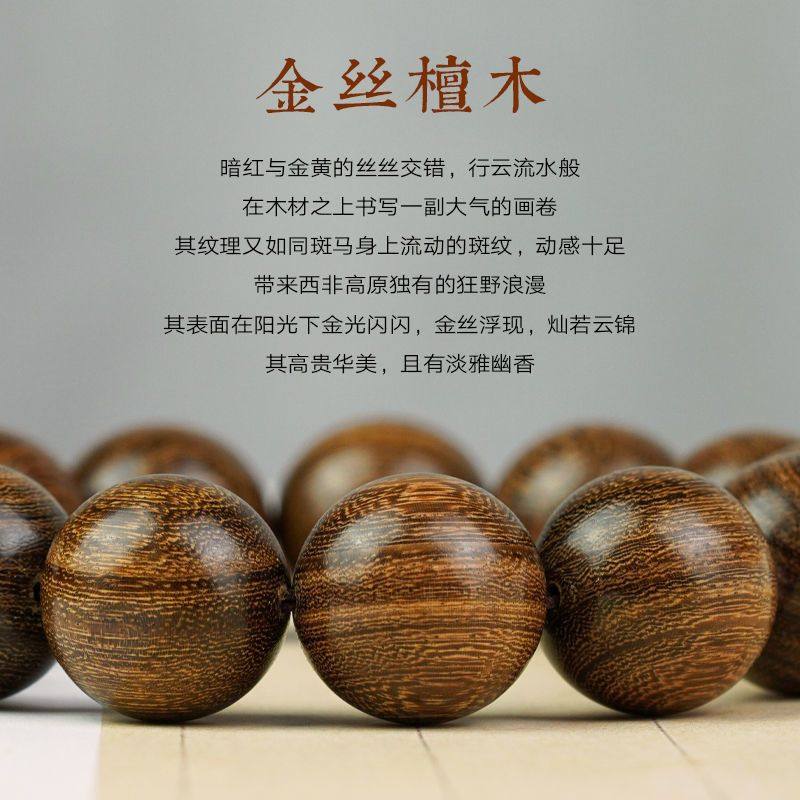 正宗金丝檀木民族风佛珠手串老料木质盘玩念珠男女原木顺纹理手链