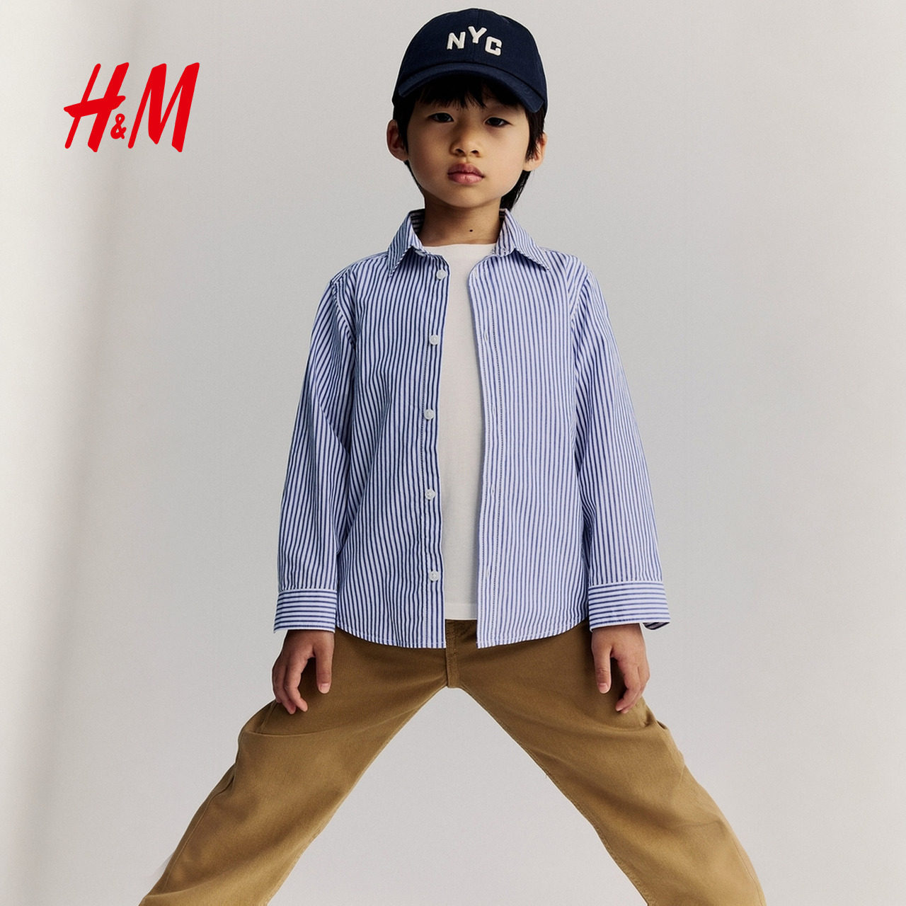 HM童装儿童男童衬衫2025年冬季新款内搭打底衫棉质衬衫1289801