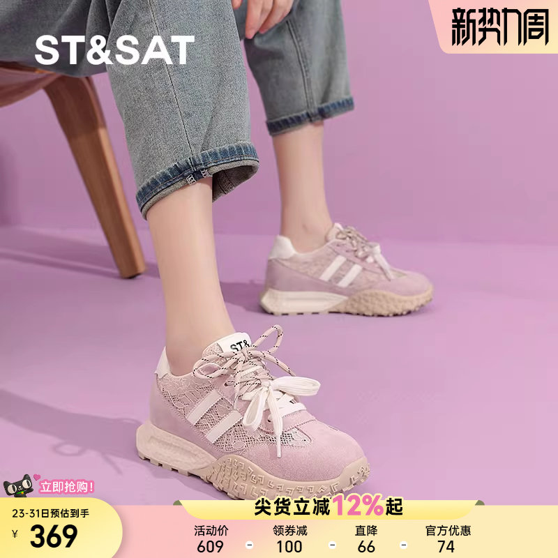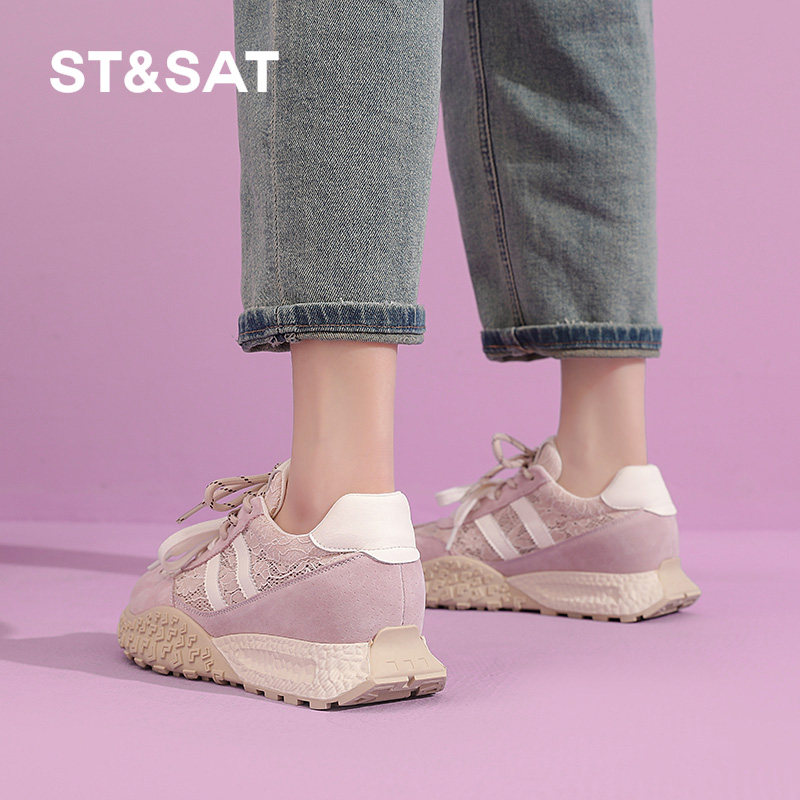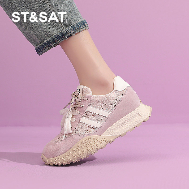 星期六内增高德训鞋女鞋春夏小白网面透气厚底增高女休闲阿甘板鞋