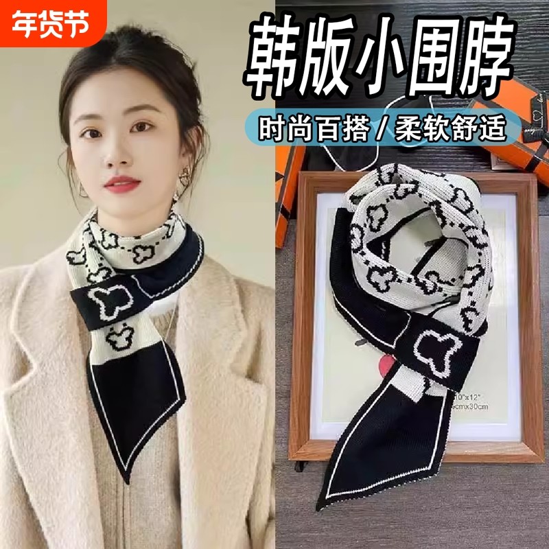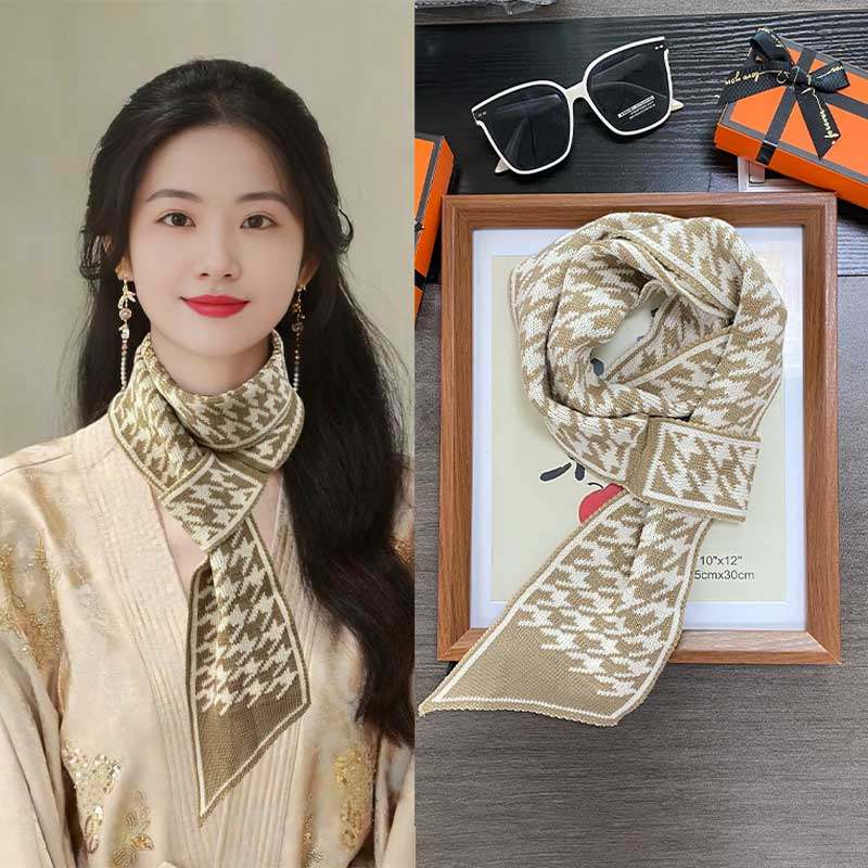 2024新款护颈小围脖围巾女秋冬百搭高级感针织保暖千格鸟脖套丝巾