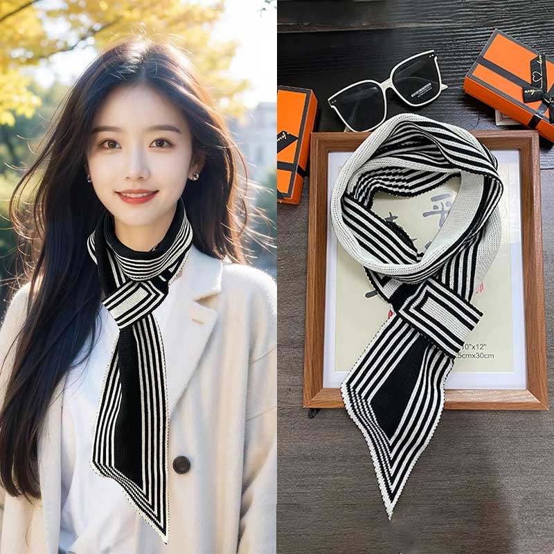 2024新款四季百搭长条小丝巾女薄款洋气高级黑白围脖领巾韩式围巾