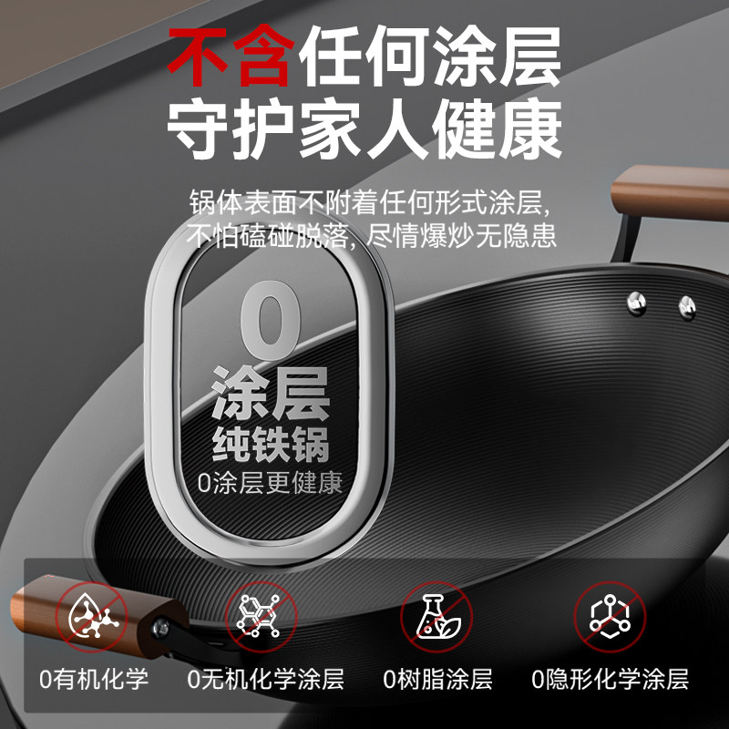 章丘炒菜锅传统铁锅官方旗舰老式炒锅家用不粘锅无涂层燃气灶适用