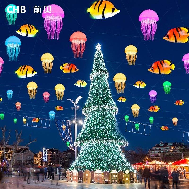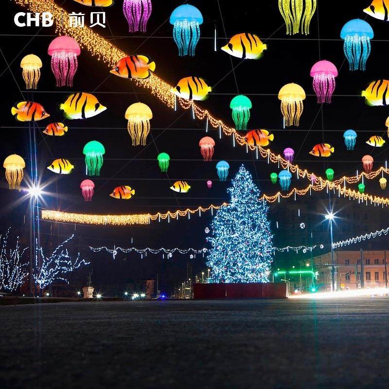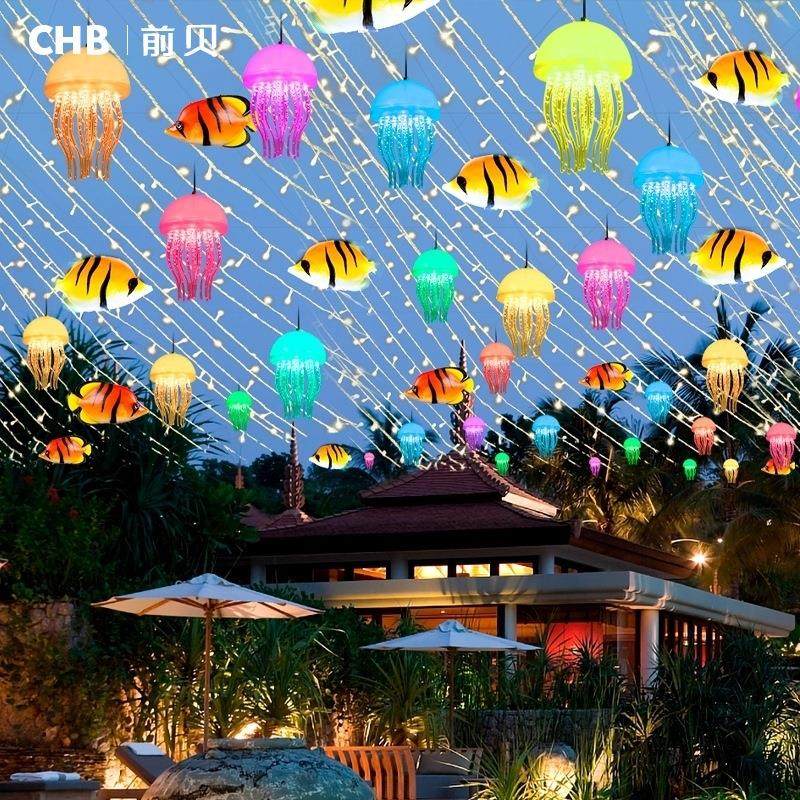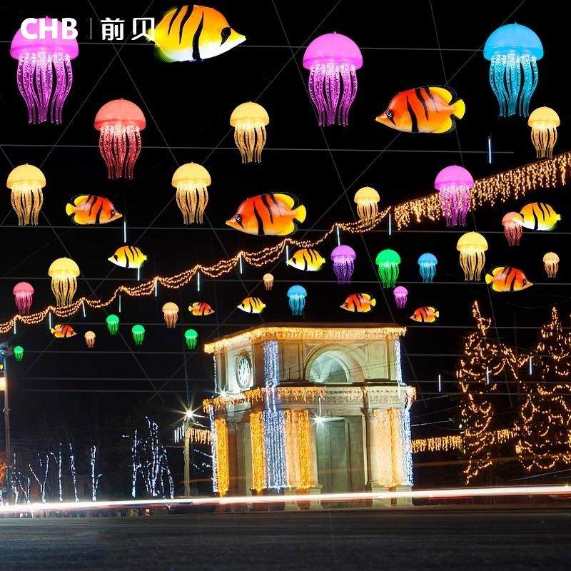 光纤海洋动物热带鱼灯水母灯氛围灯七彩变色装饰灯户外广场景观灯