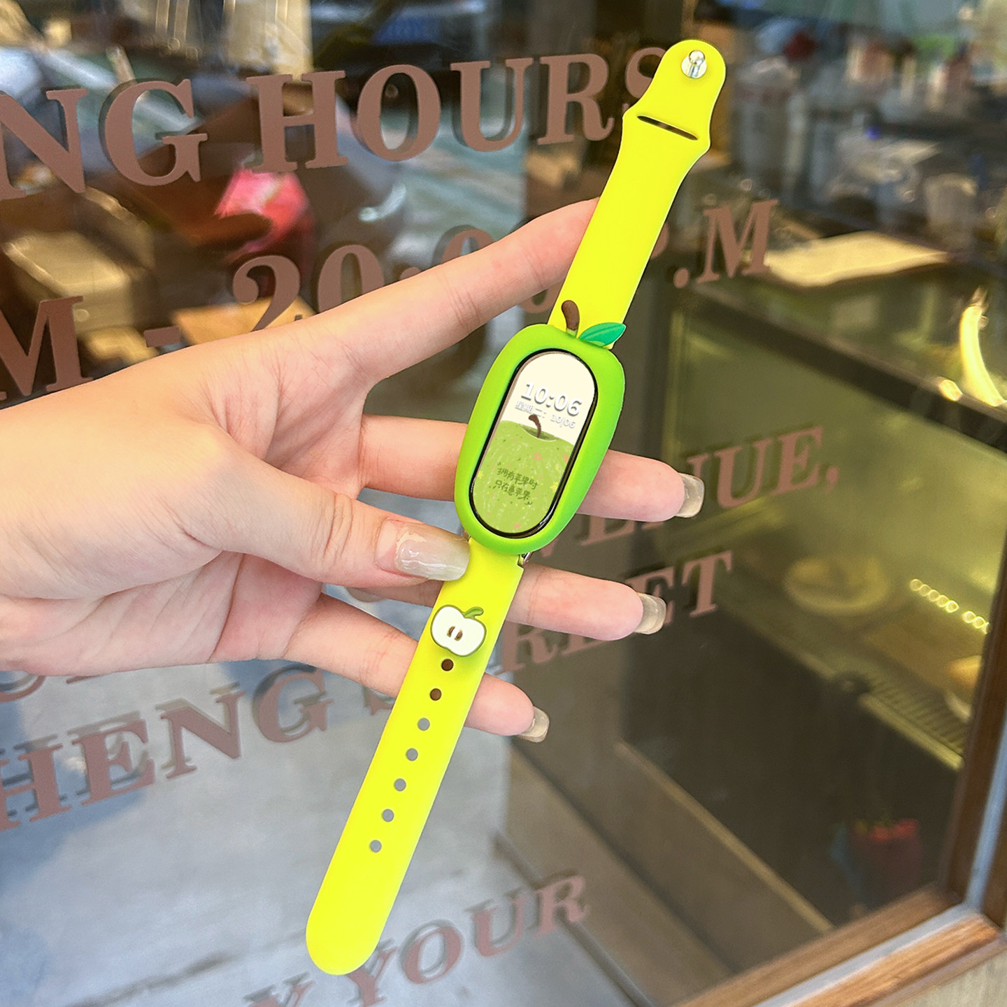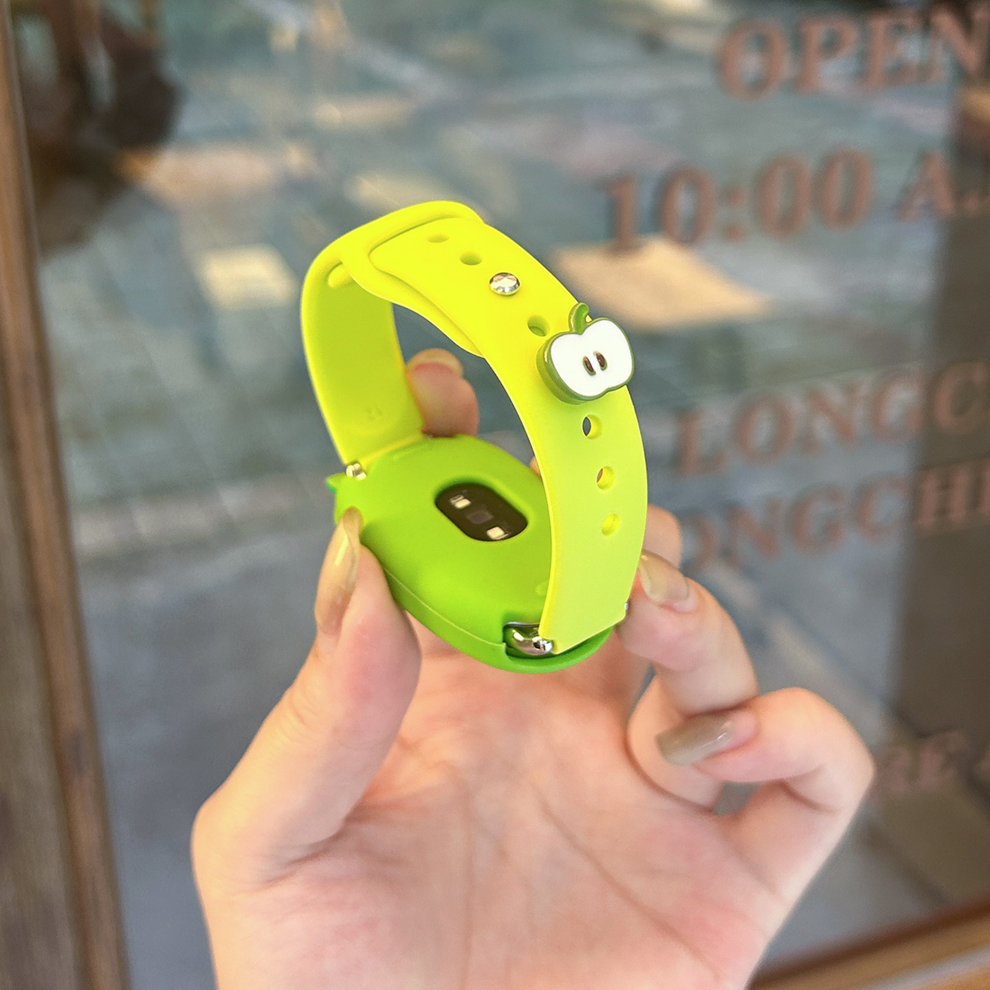 适用小米手环10表带9/8青苹果乐园反扣硅胶7/6/5/4/3NFC版腕带卡通可爱苹果硅胶表带运动亲肤通用10替换带女
