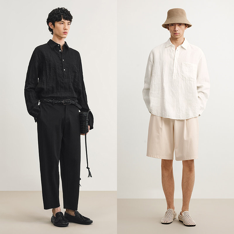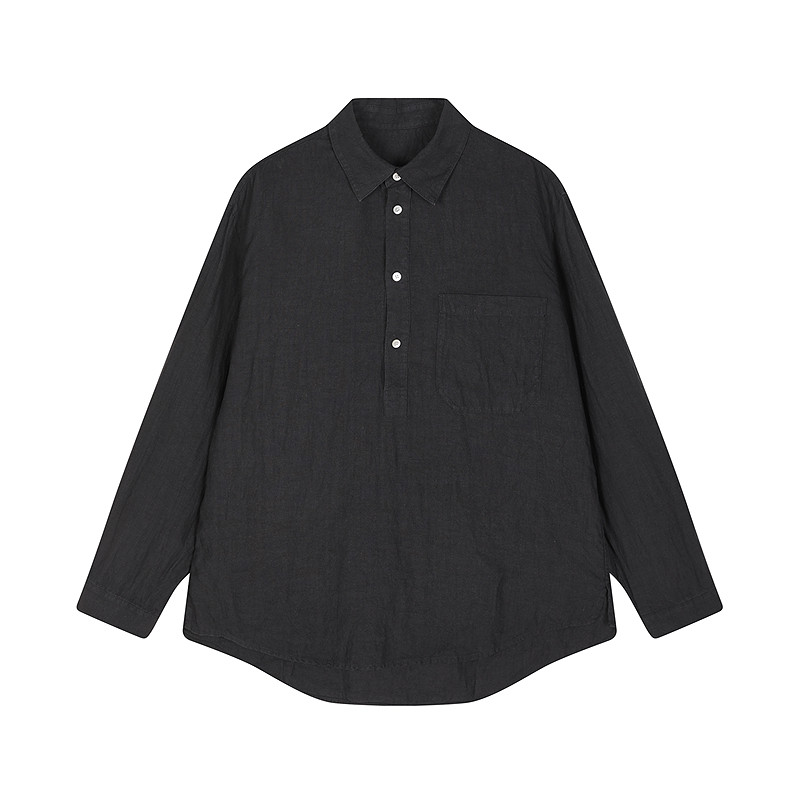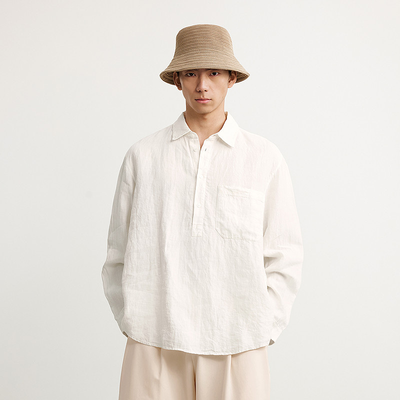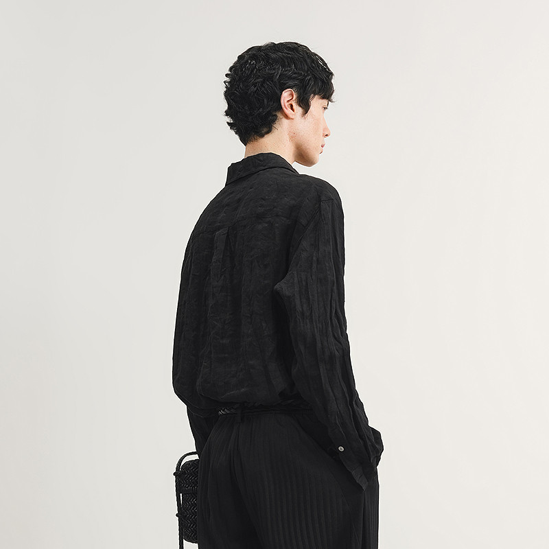 [亚麻]速写男装春秋新款男士长袖衬衣宽松衬衫压皱设计休闲松弛