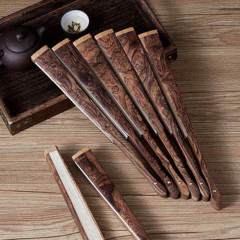 黄花梨文玩扇子夏折扇男古风宣纸扇面木质收藏折叠扇骨架