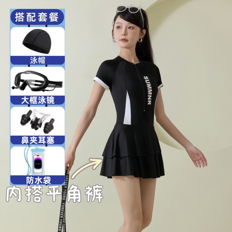 连体泳衣女士新款游泳馆专用游泳衣保守显瘦遮肚裙式平角游泳装女