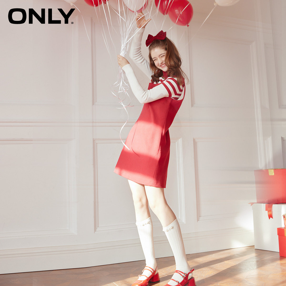 【ONLY奥莱】春季新款气质条纹针织衫圣诞套装连衣裙女