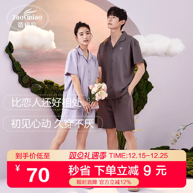 【造福鸟】情侣纯棉睡衣短袖宽松薄款家居服套装可外穿男女同款