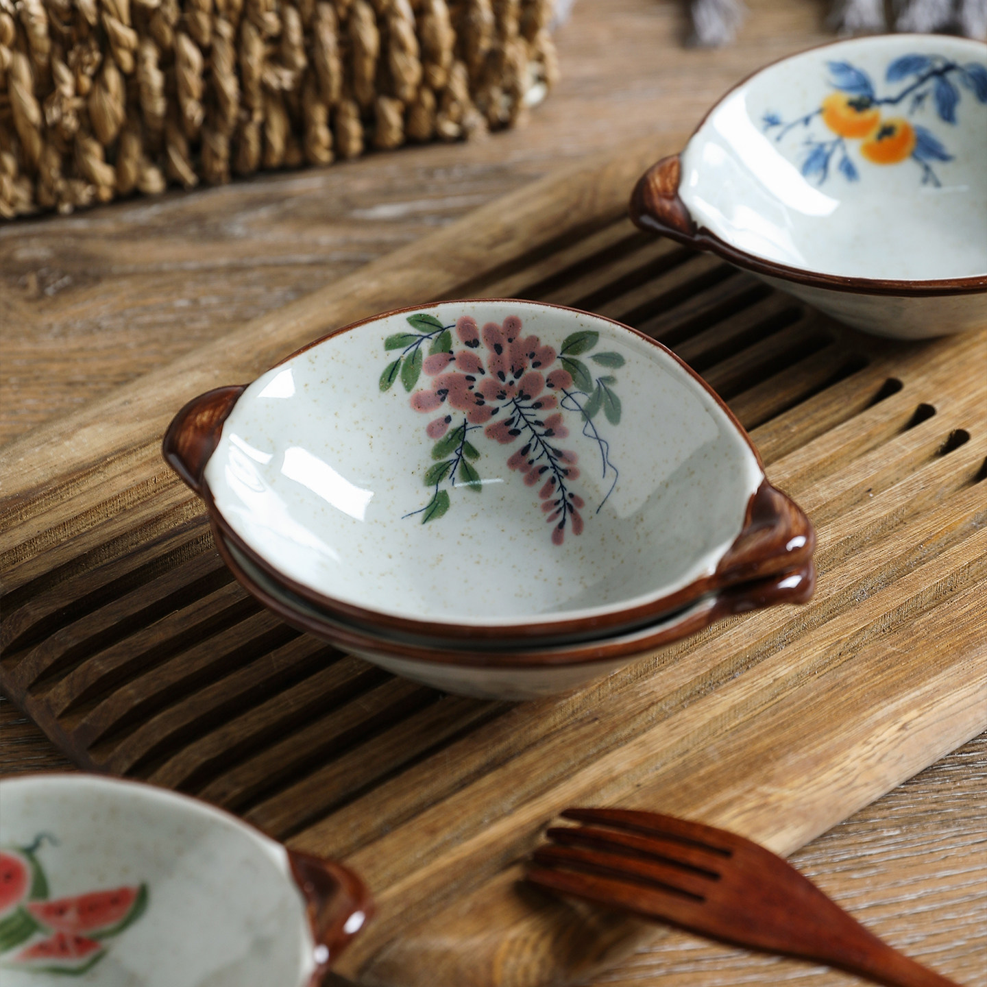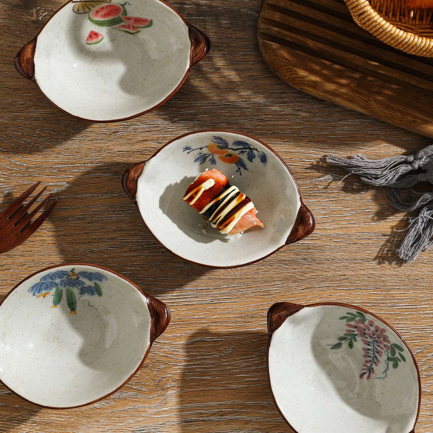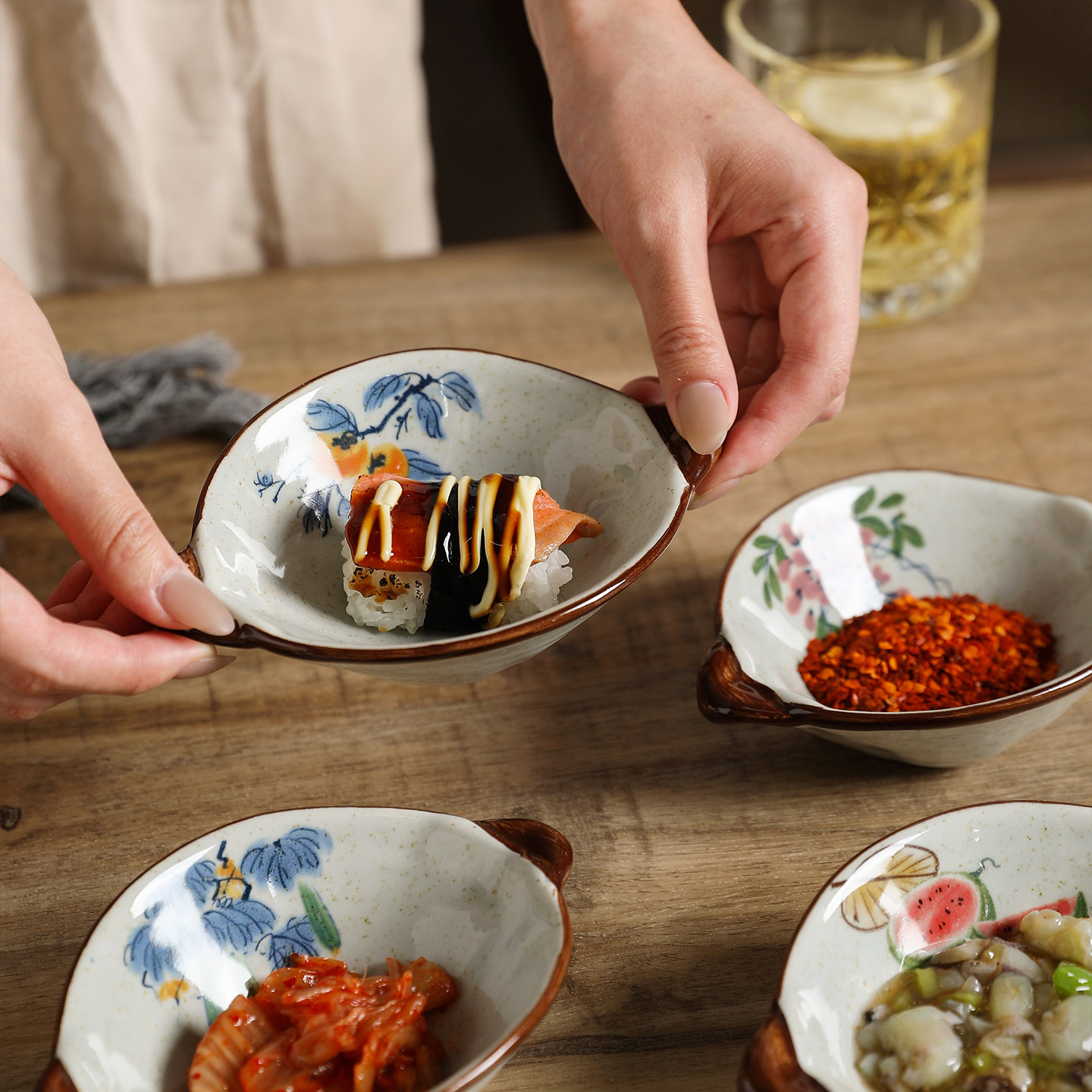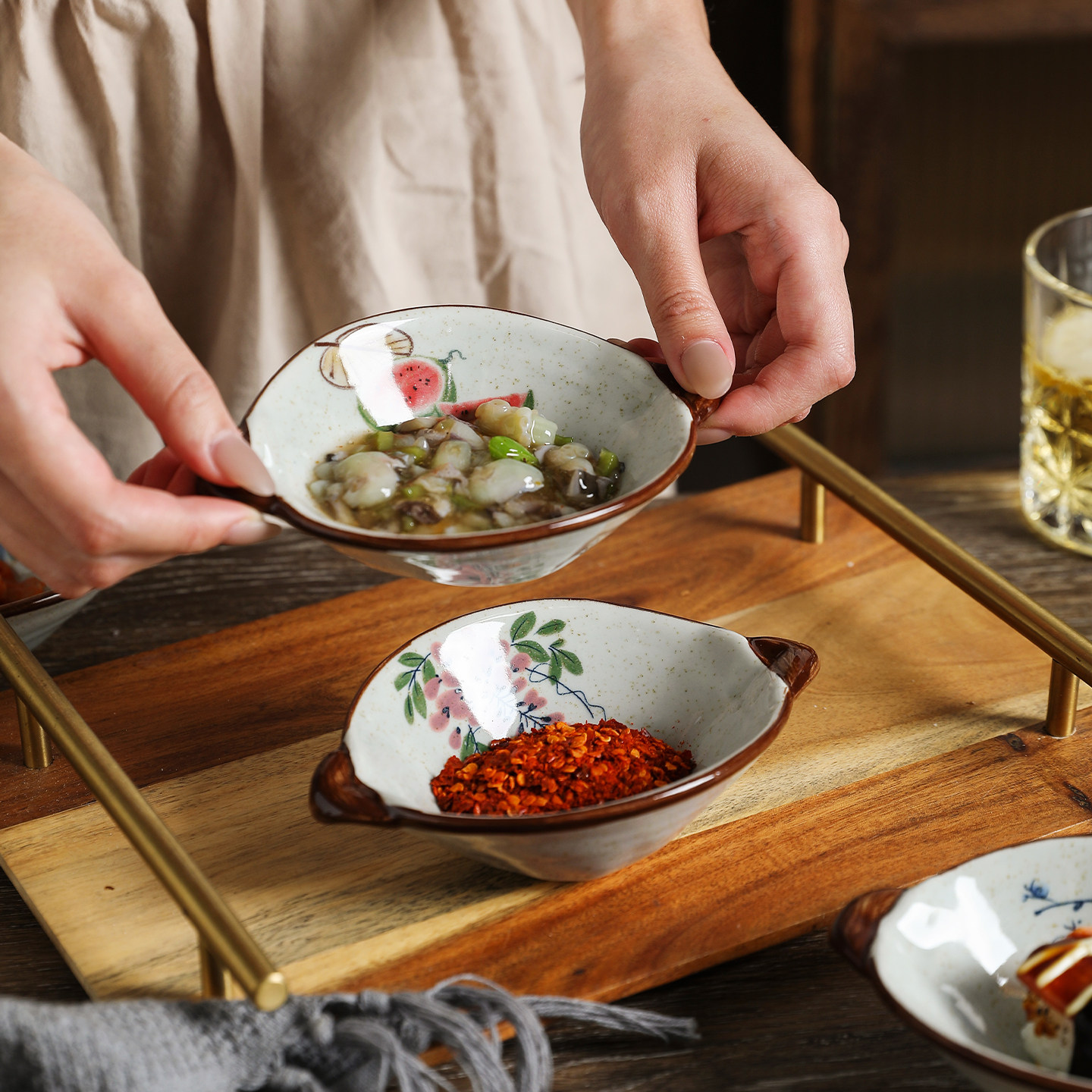 舍里中式复古陶瓷碟子家用蘸料碟双耳调料碟小菜碟火锅烤肉调味碟