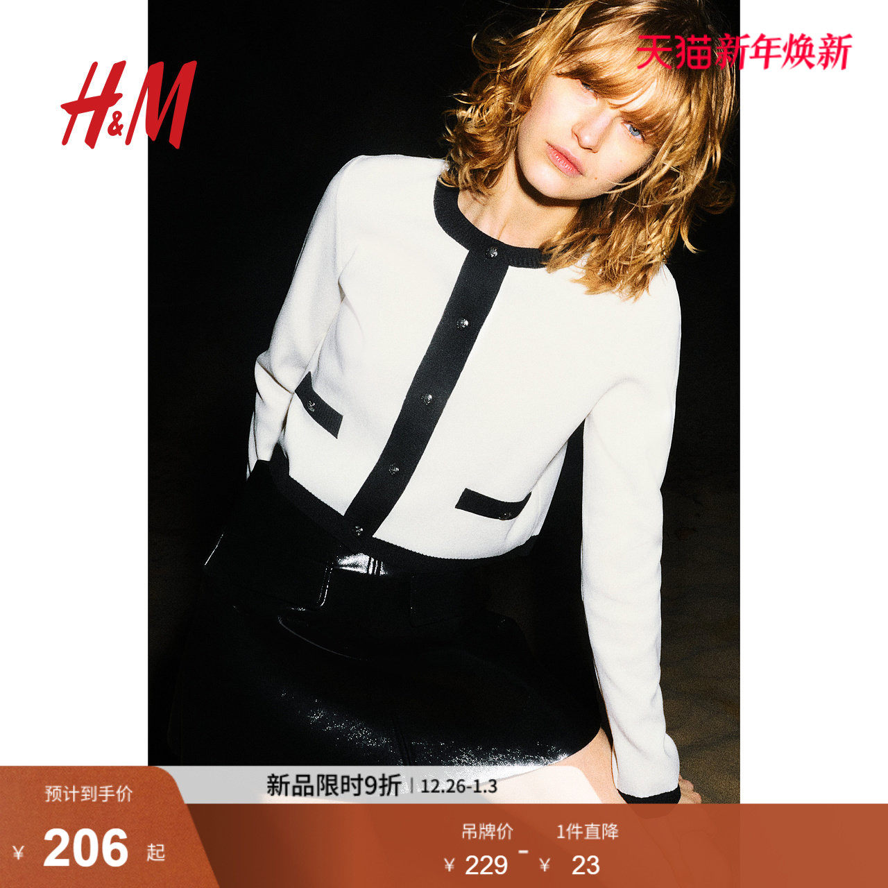 HM冬季女装冬季时尚精致时尚休闲潮流细密小香风针织开衫1265360