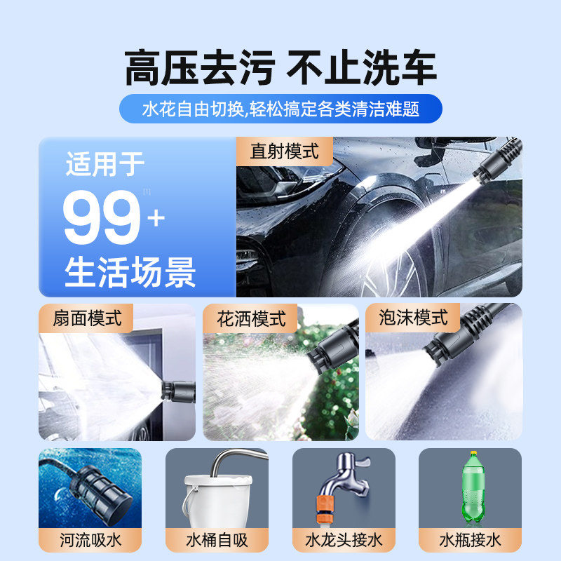 高压洗车水枪无线大功率家用锂电池强力增压清洗机喷水枪无刷水管