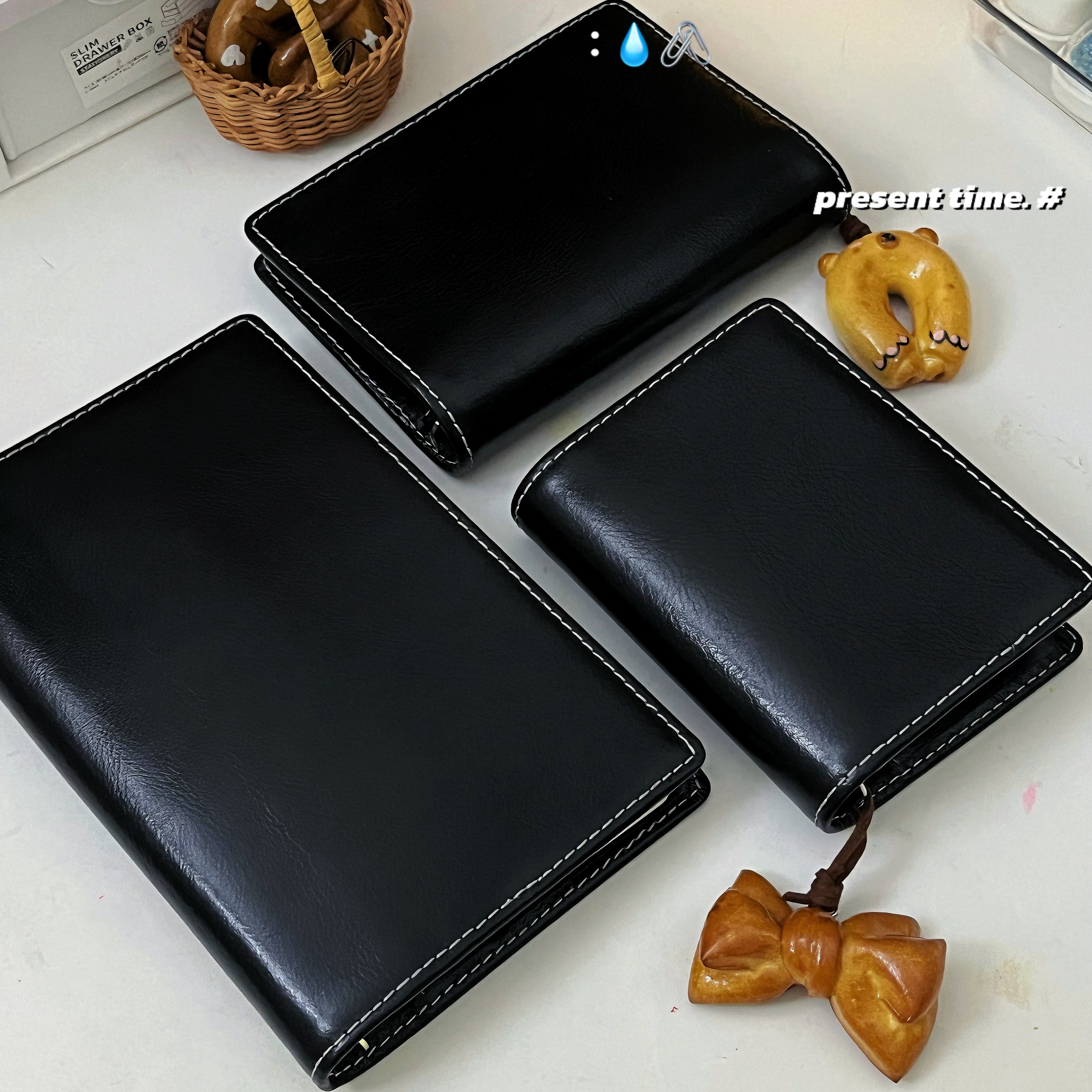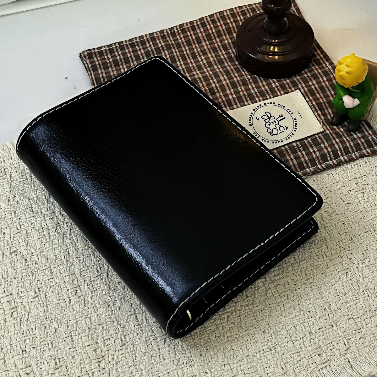 现货A8/A7/A6真皮黑色油蜡手账本无扣设计两折窄版贴边活页本