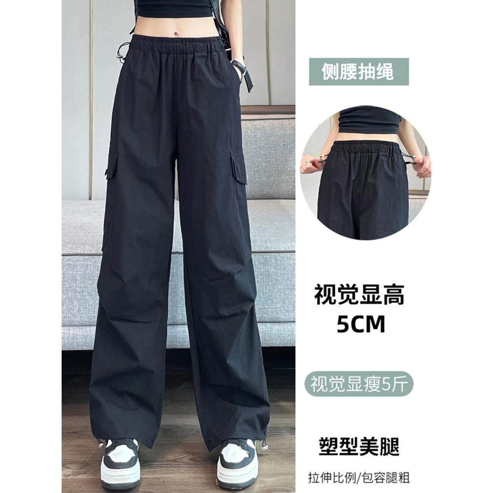 工装裤女夏季2025高腰降落伞冰丝运动裤黑色加长时髦白色小个子