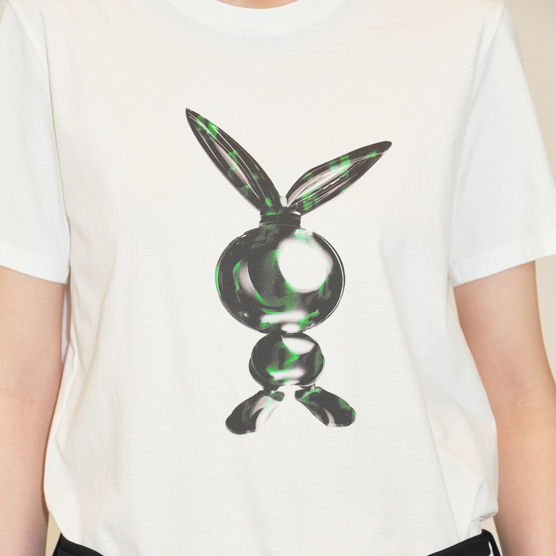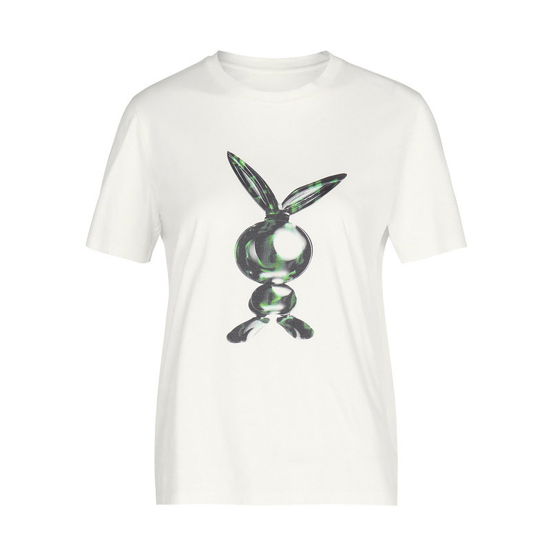 LESS春季棉质T恤女兔子印花休闲简约圆领短袖上衣2N1110010