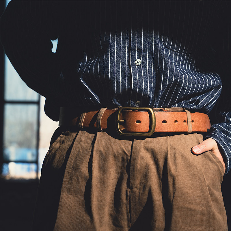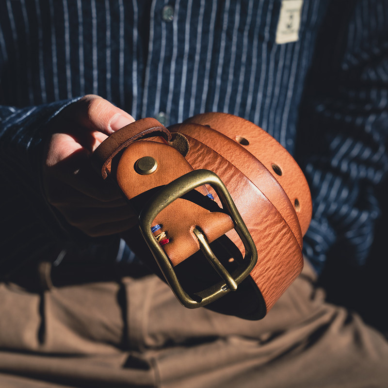 美式阿美咔叽男女士复古休闲工装腰带皮带意大利头层牛皮耐用加厚