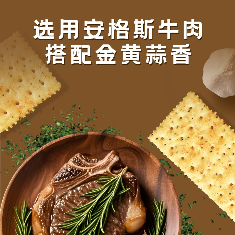煌记金蒜牛肉青柠三文鱼苏打饼干咸味网红爆款饱腹小吃休闲零食