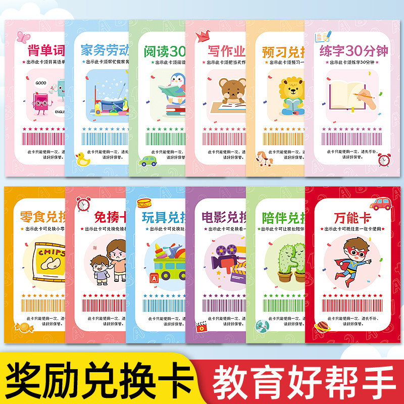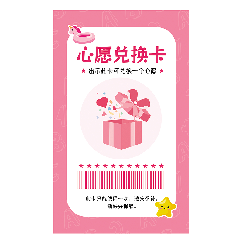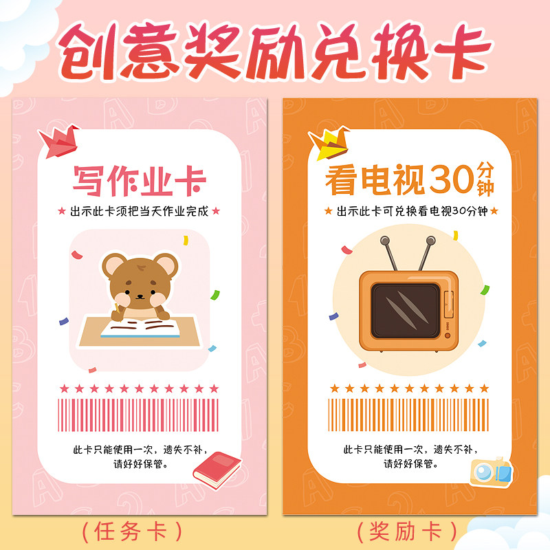 儿童专属家庭任务卡心愿卡亲子互动兑换券奖励孩子好习惯礼物卡片