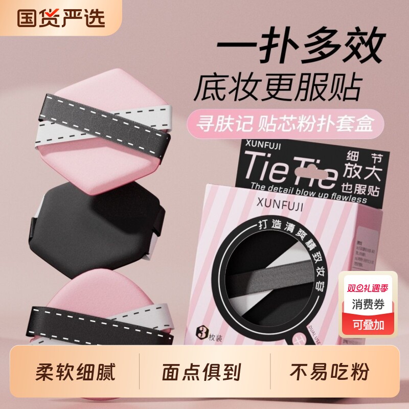 干湿两用贴芯六边形气垫粉底液粉扑不吃粉定妆柔软海绵不卡粉套盒