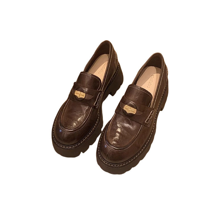 马皮~6.5cm增高厚底乐福鞋女英伦小个子棕色小皮鞋单鞋浅口圆头
