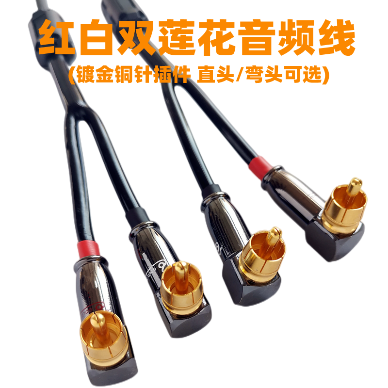 发烧级双弯头红白双莲花音频线RCA梅花 电视影碟机CD车载音响连接