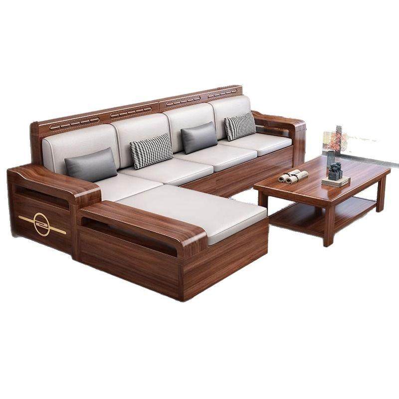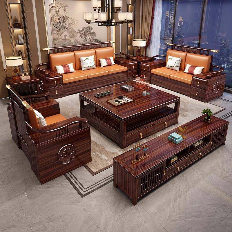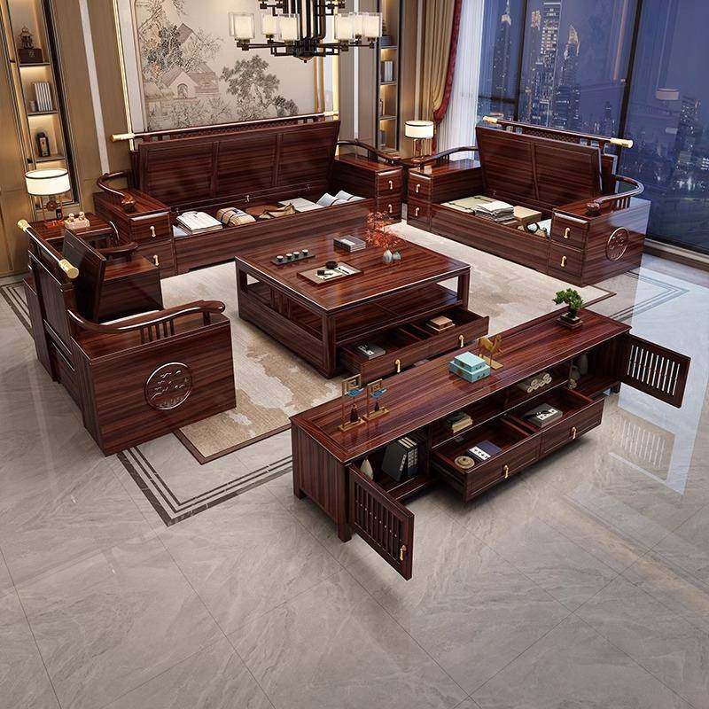 实木沙发组合中式转角贵妃冬夏两用大户型储物乌金木布艺客厅家具