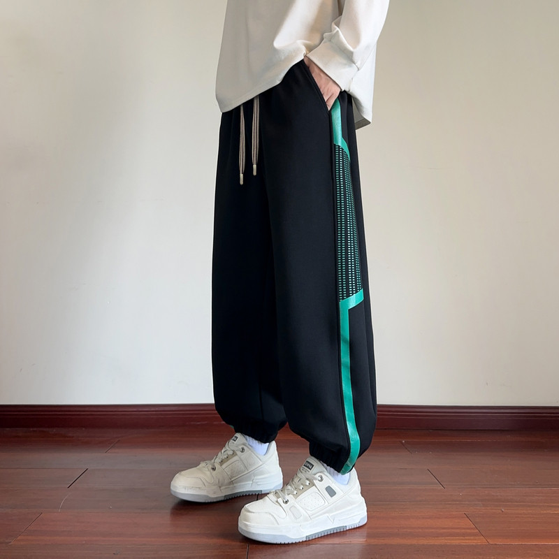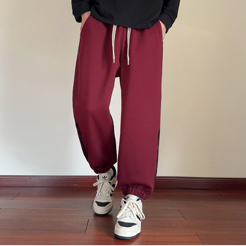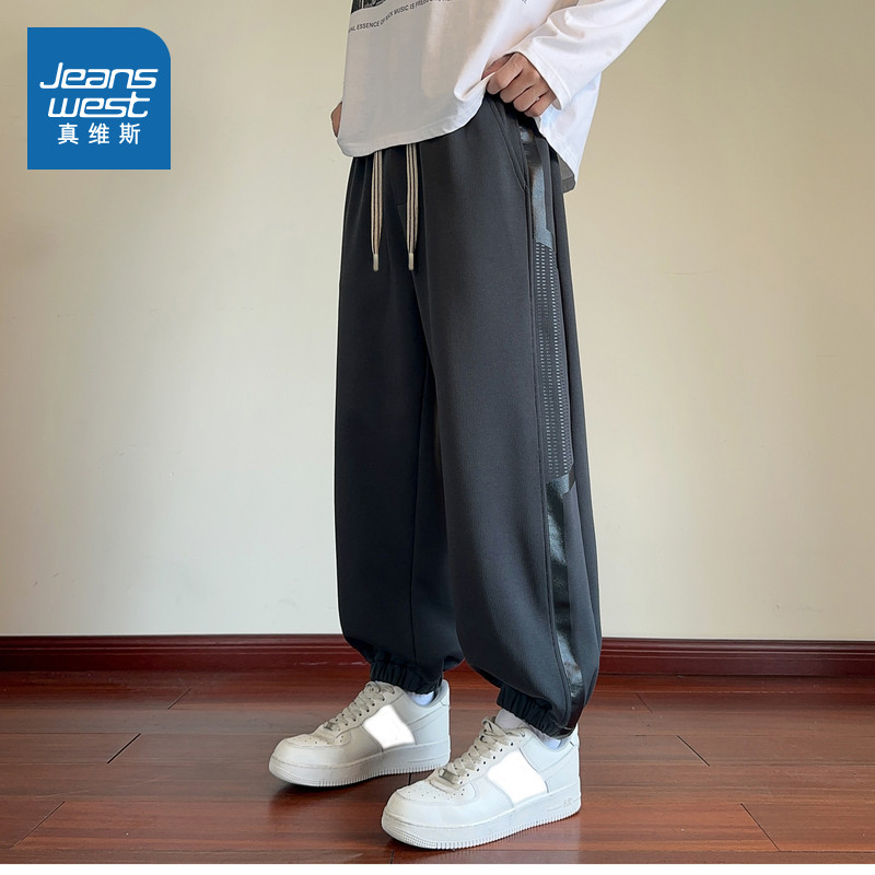 KF真维斯男款潮流拼色束脚裤 2025秋季新品男士直筒显瘦休闲长裤