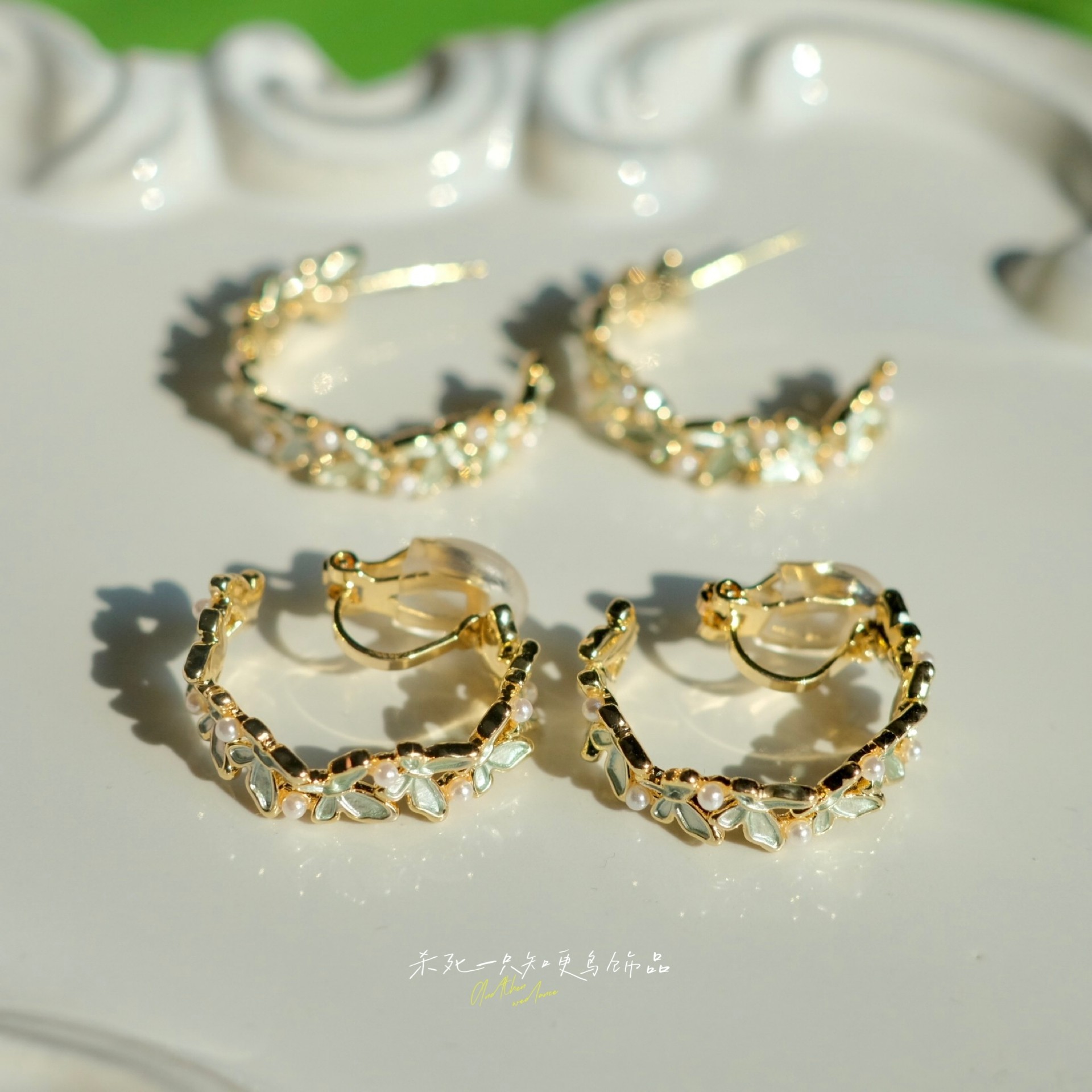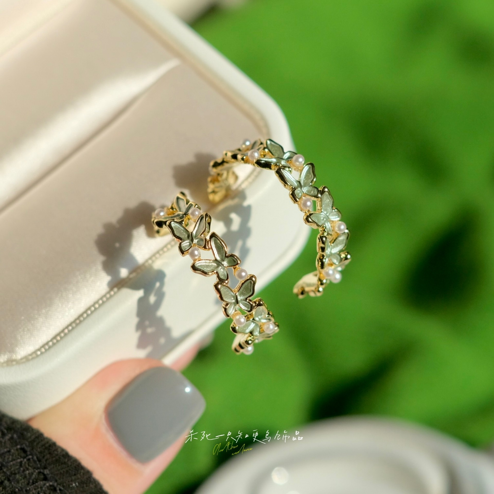 《春日游园》春夏温柔仙气珐琅釉绿色蝴蝶甜美弧形耳圈耳环耳夹女