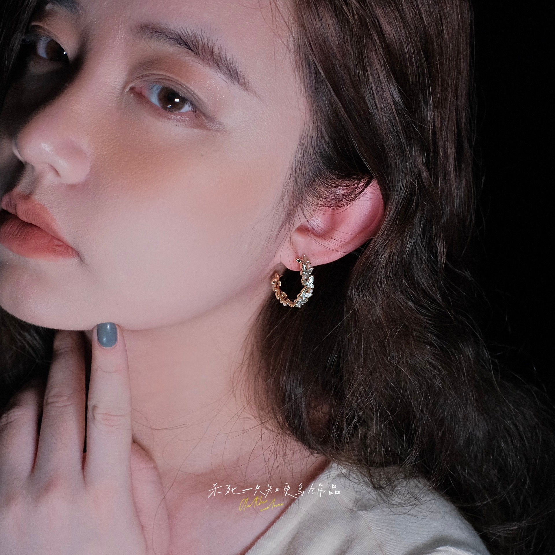 圆圈耳环菱纹光面耳圈潮高级感不掉色925银针轻奢欧美风夸张耳饰