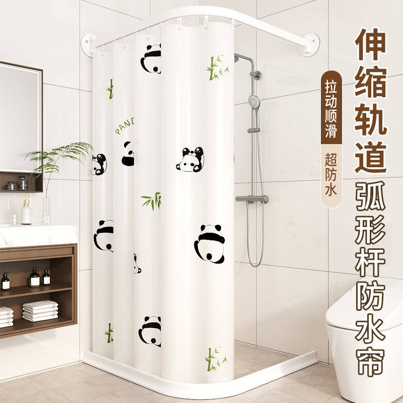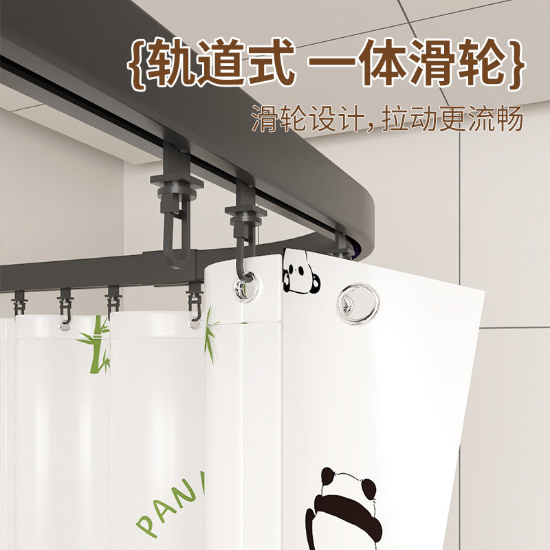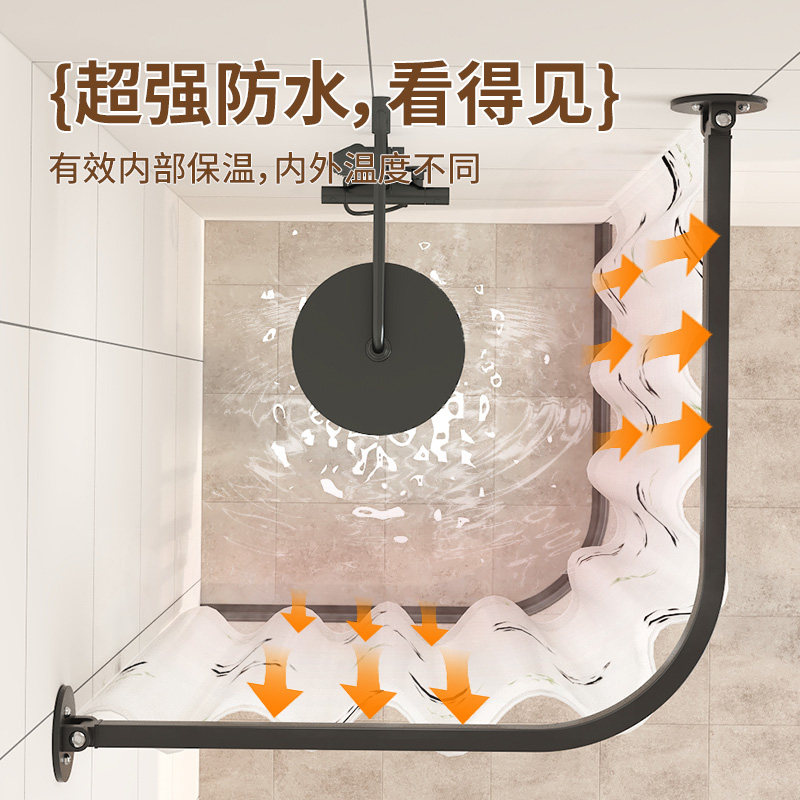 浴室免打孔弧形轨道浴帘套装弧形杆防水防霉PVE帘挡水伸缩玻璃