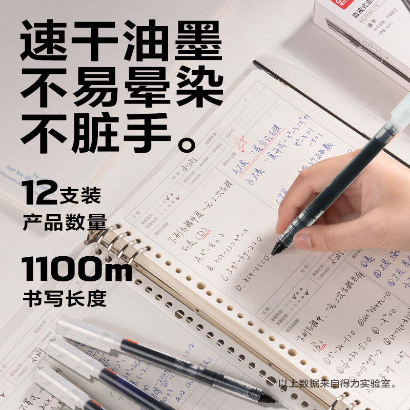 直液式速干顺滑考试笔,简约走珠办公黑笔