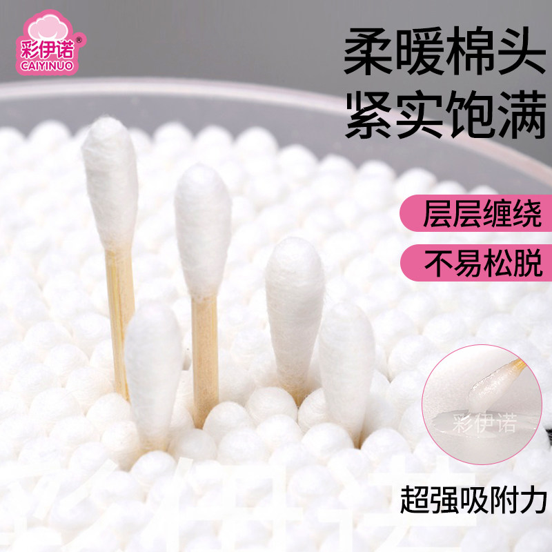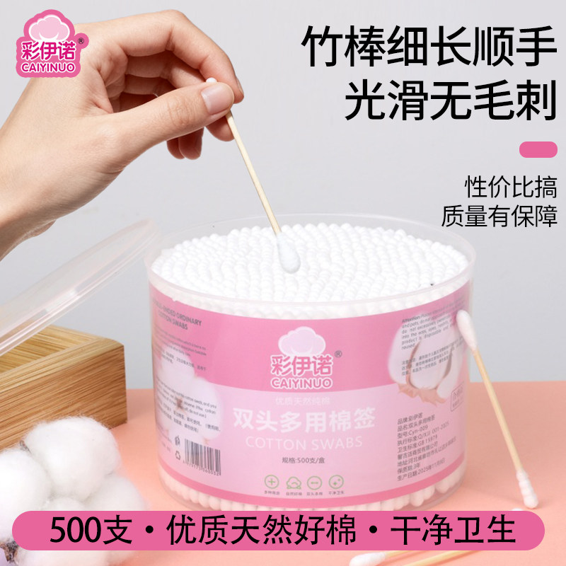 彩伊诺棉签掏耳朵化妆专用竹棒一次性棉花棒双头罐竹棒棉签500支