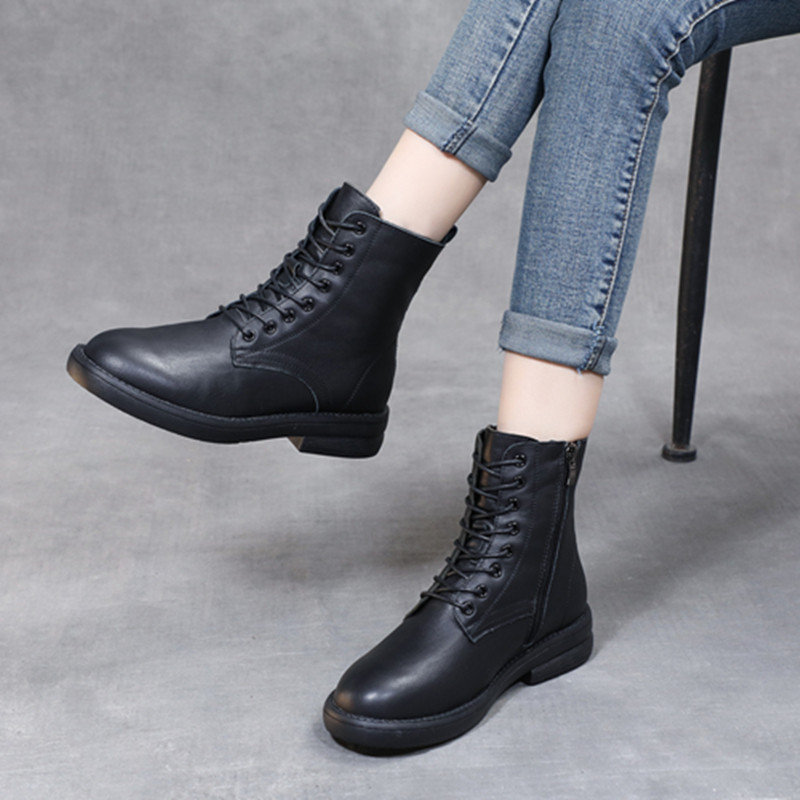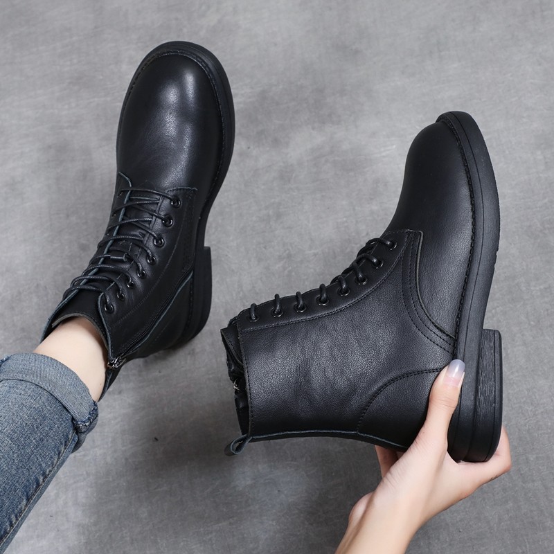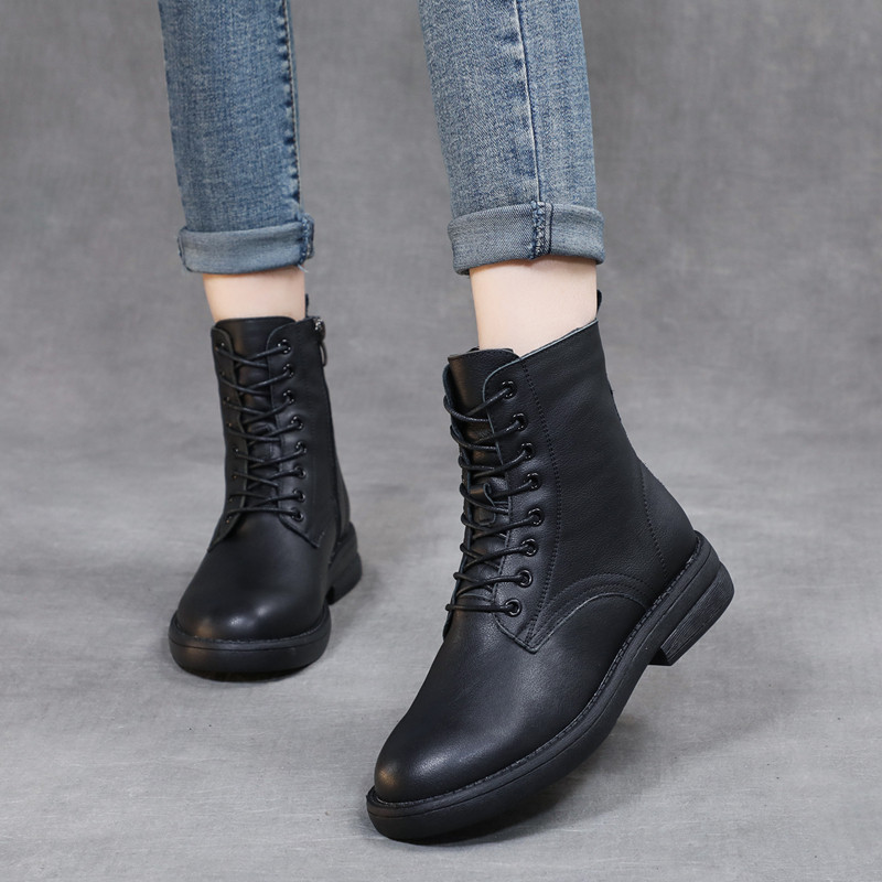 真皮短靴女马丁靴2025春秋软底全牛皮单靴软皮女士皮鞋加绒冬靴子