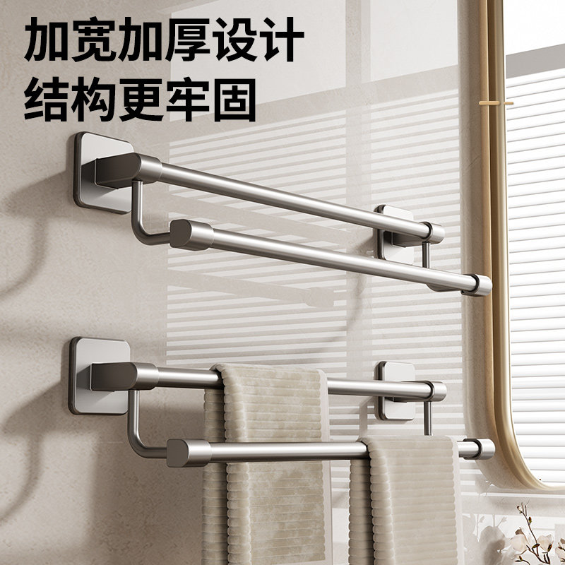 浴室免打孔毛巾架卫生间不锈钢可伸缩旋转吸盘毛巾挂杆单杆置物架