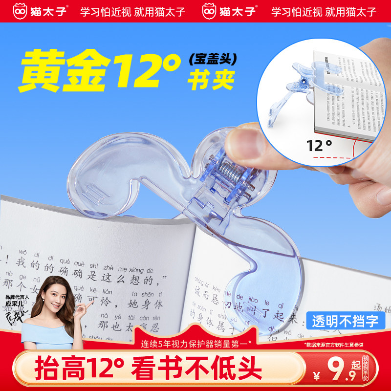 猫太子小学生宝盖头书夹黄金12度透明书签儿童专用固定书本书夹看书读书阅读支架压书神器夹子文具多功能大号