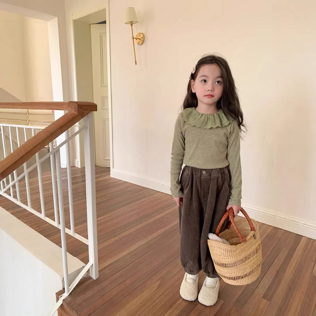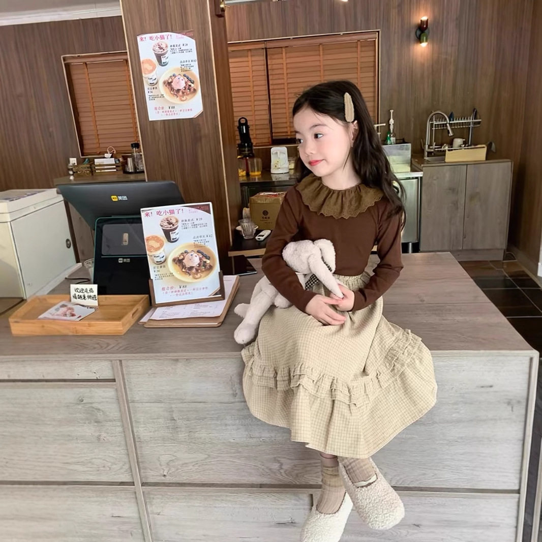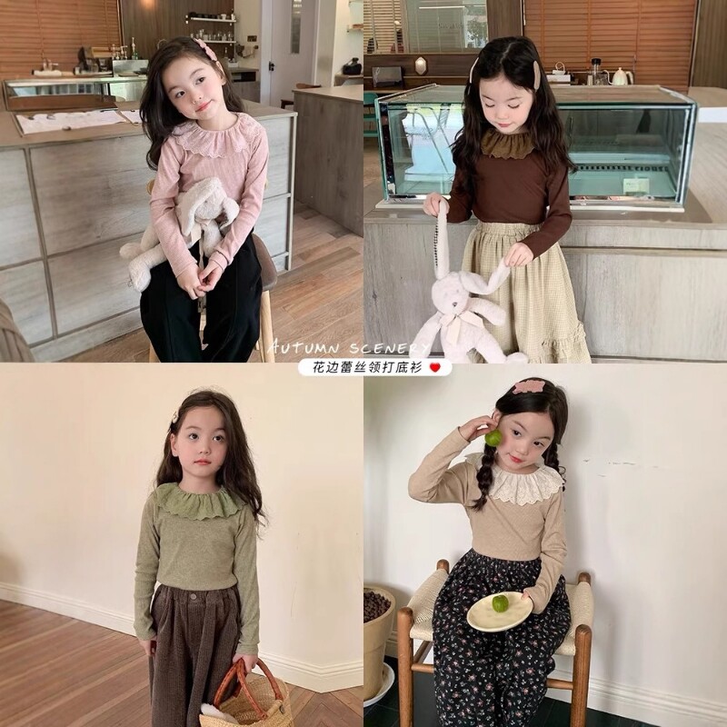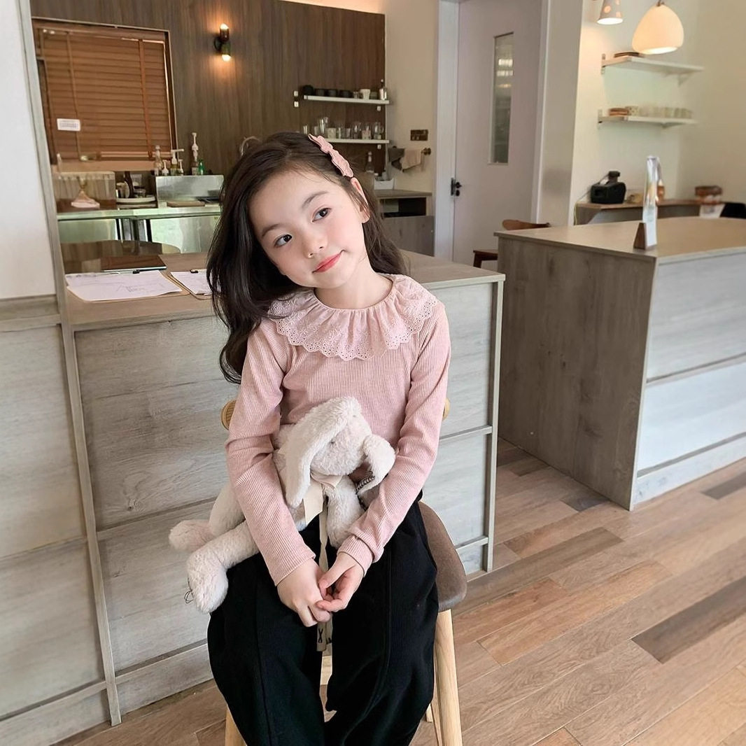 女童娃娃领打底衫柔软公主内搭上衣洋气儿童翻领蕾丝秋装T恤花边