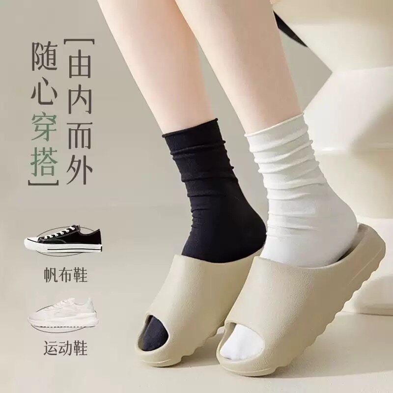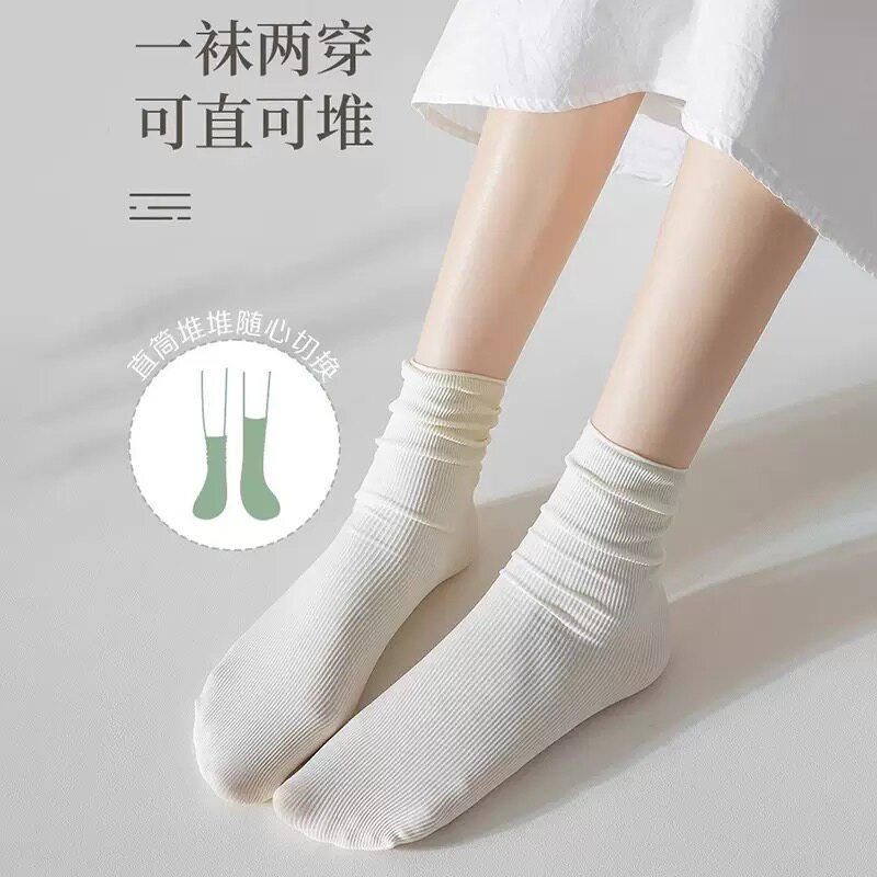 夏薄款冰冰袜夏天女堆堆袜中筒袜夏款冰丝袜无骨白色袜子黑色