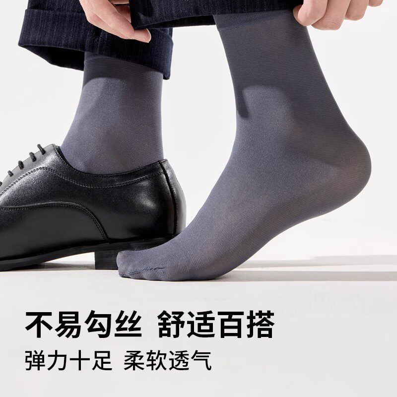 丝袜男士春夏薄款防臭冰丝透气中筒袜子男款纯色棉夏天长袜搭皮鞋