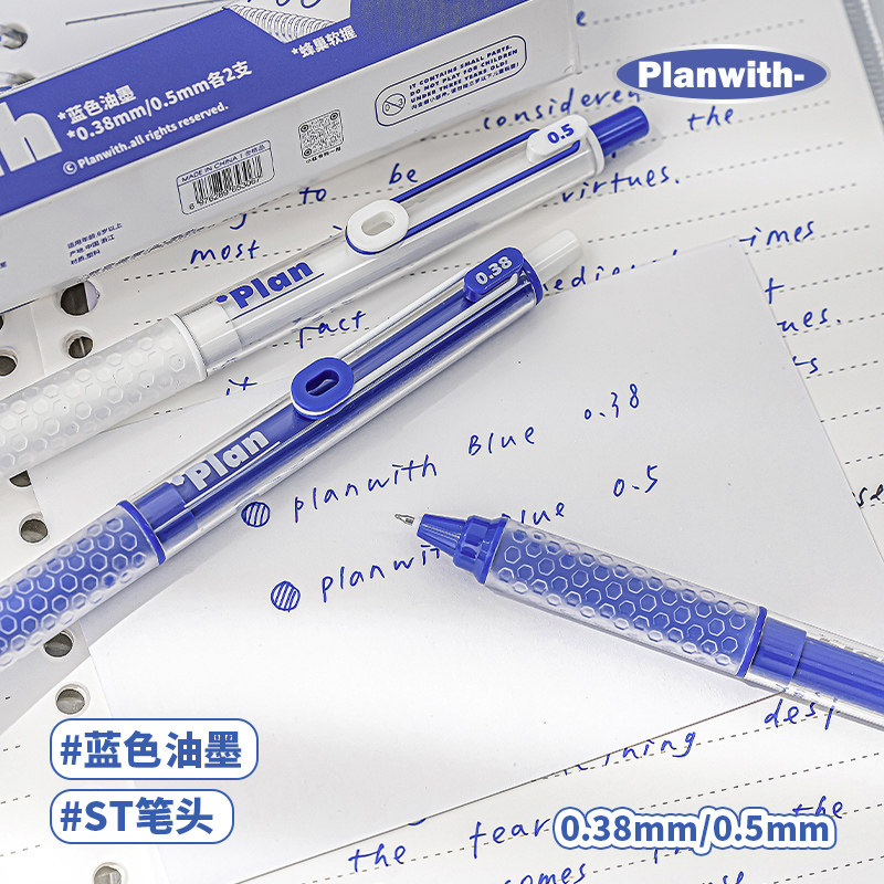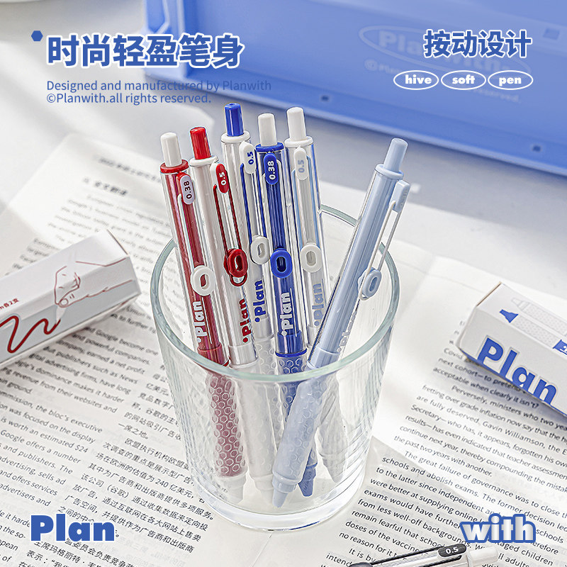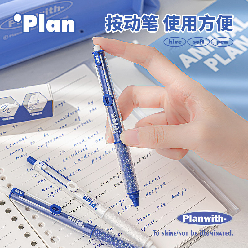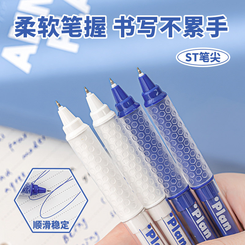 Planwith中性笔蜂巢软握刷题笔黑色笔芯红色蓝色高颜值文具学生考试专用笔ST笔尖速干顺滑签字笔按动式圆珠笔