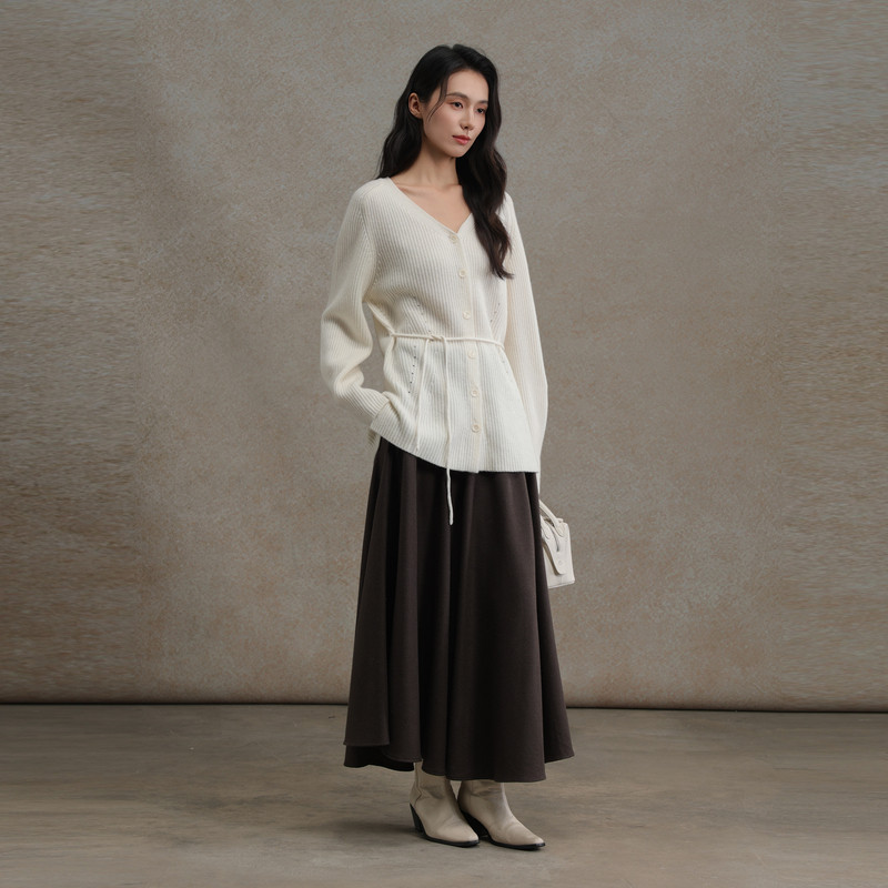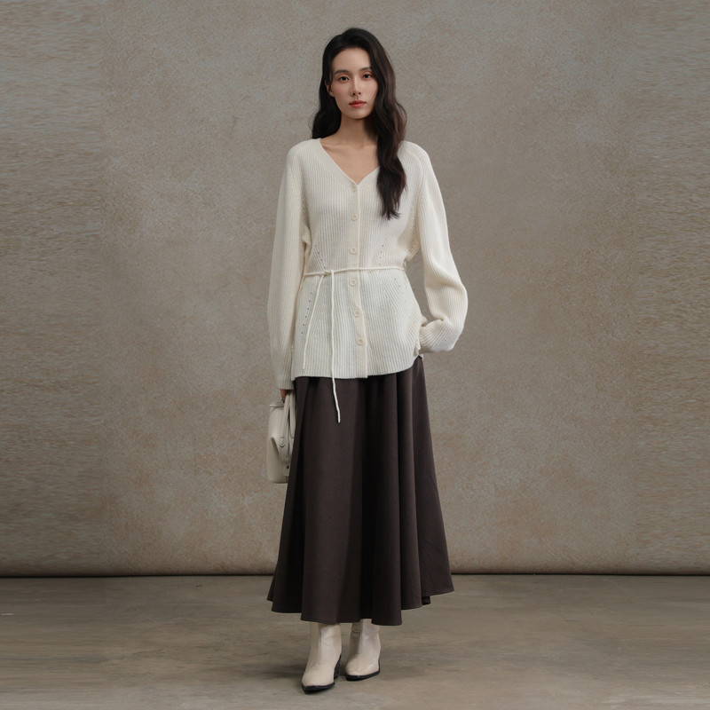 黑标BAIZHUO商场同款25冬新款宽松大摆A字裙羊毛半身裙AZ54BQ288
