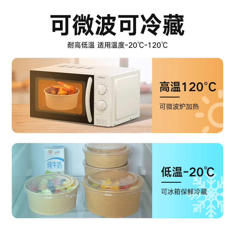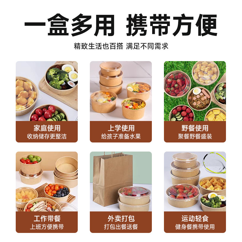 一次性打包盒食品级沙拉碗牛皮纸碗饭盒野餐泡面外卖快餐盒水果盒
