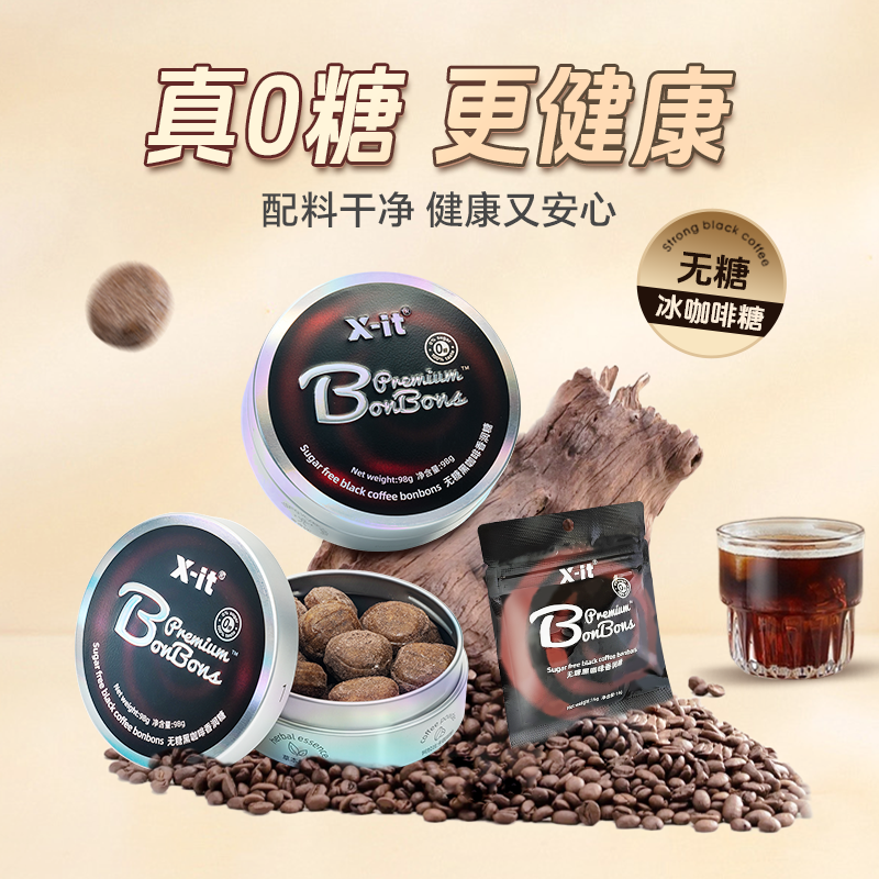 xit冰咖啡糖无糖黑咖啡润喉香润清凉薄荷糖果vc原味特浓提神硬糖