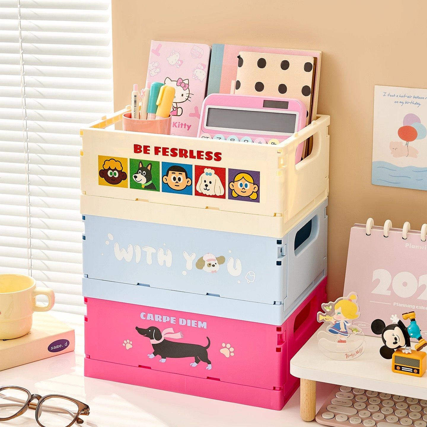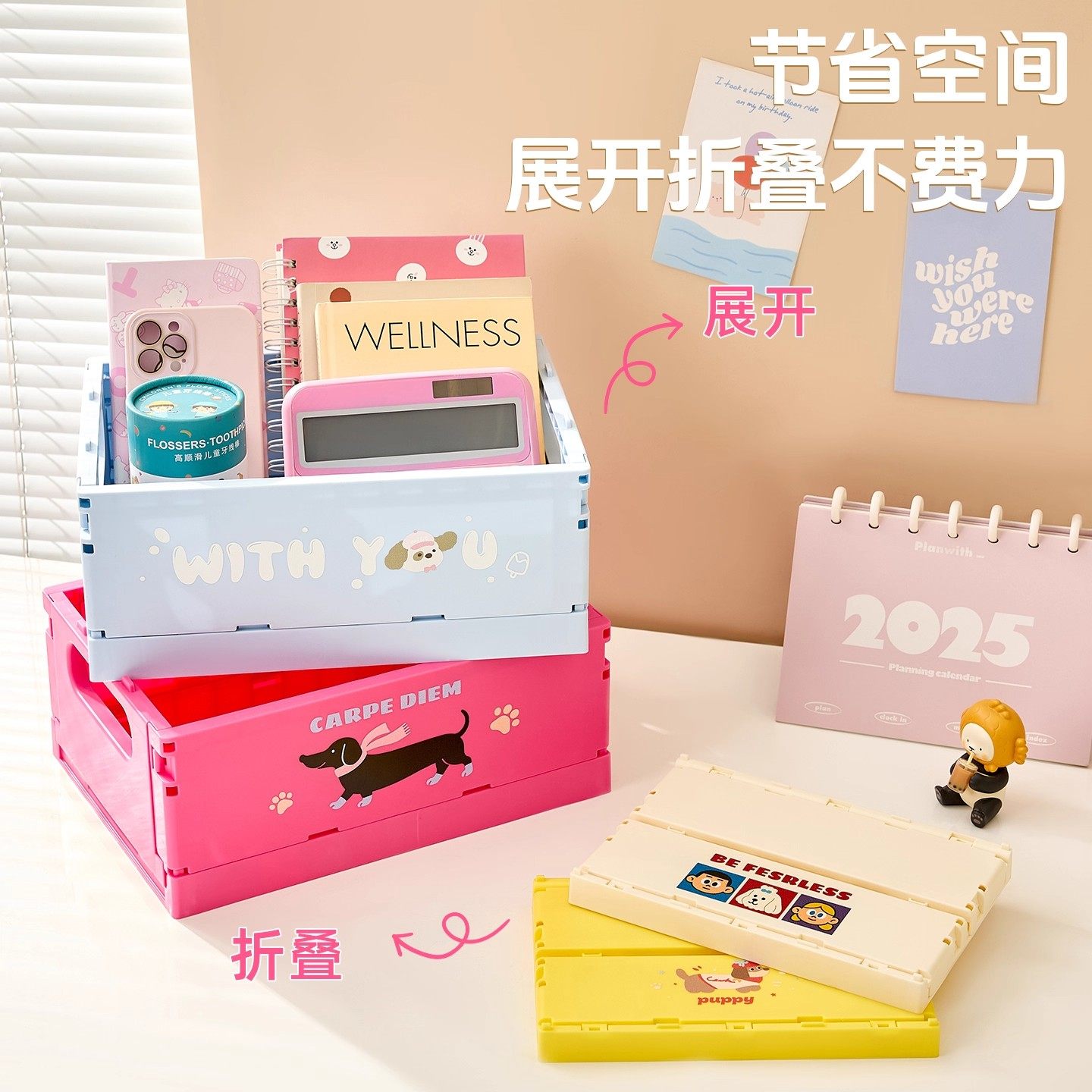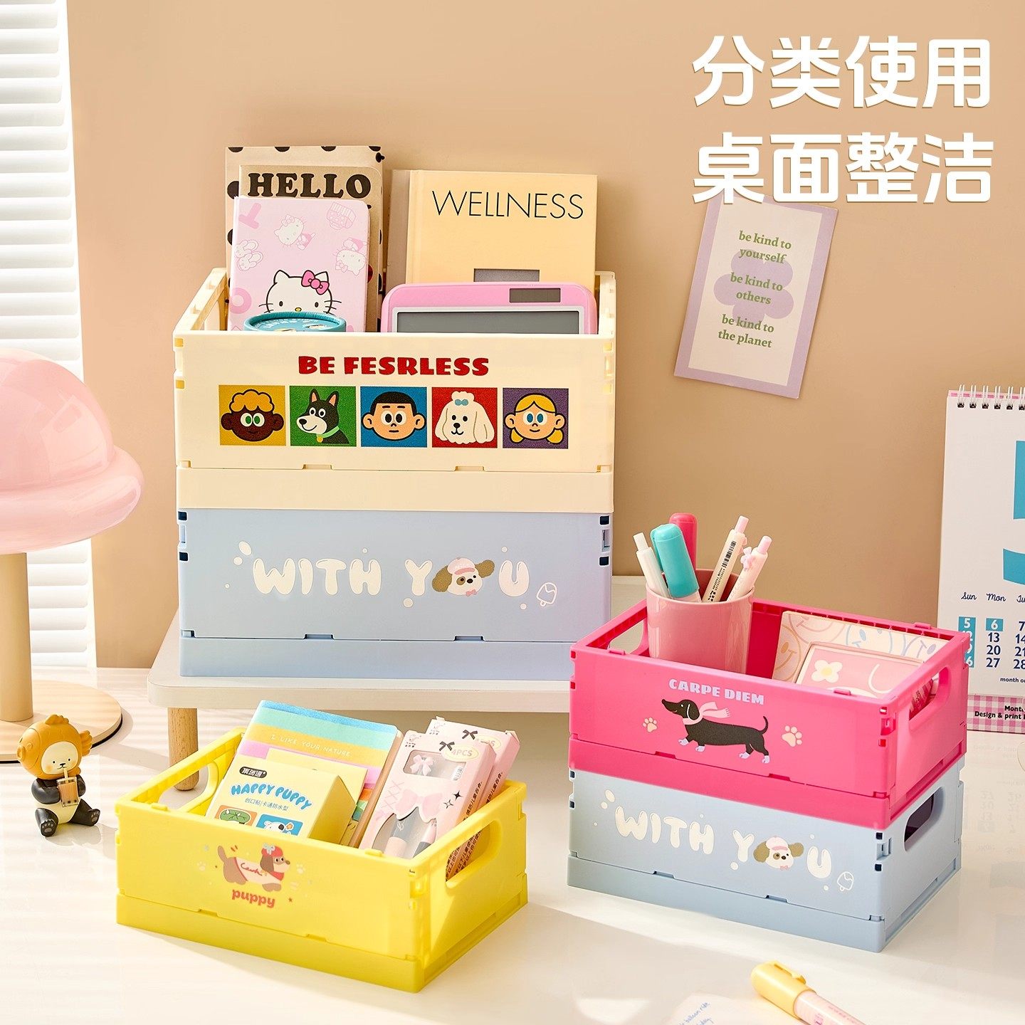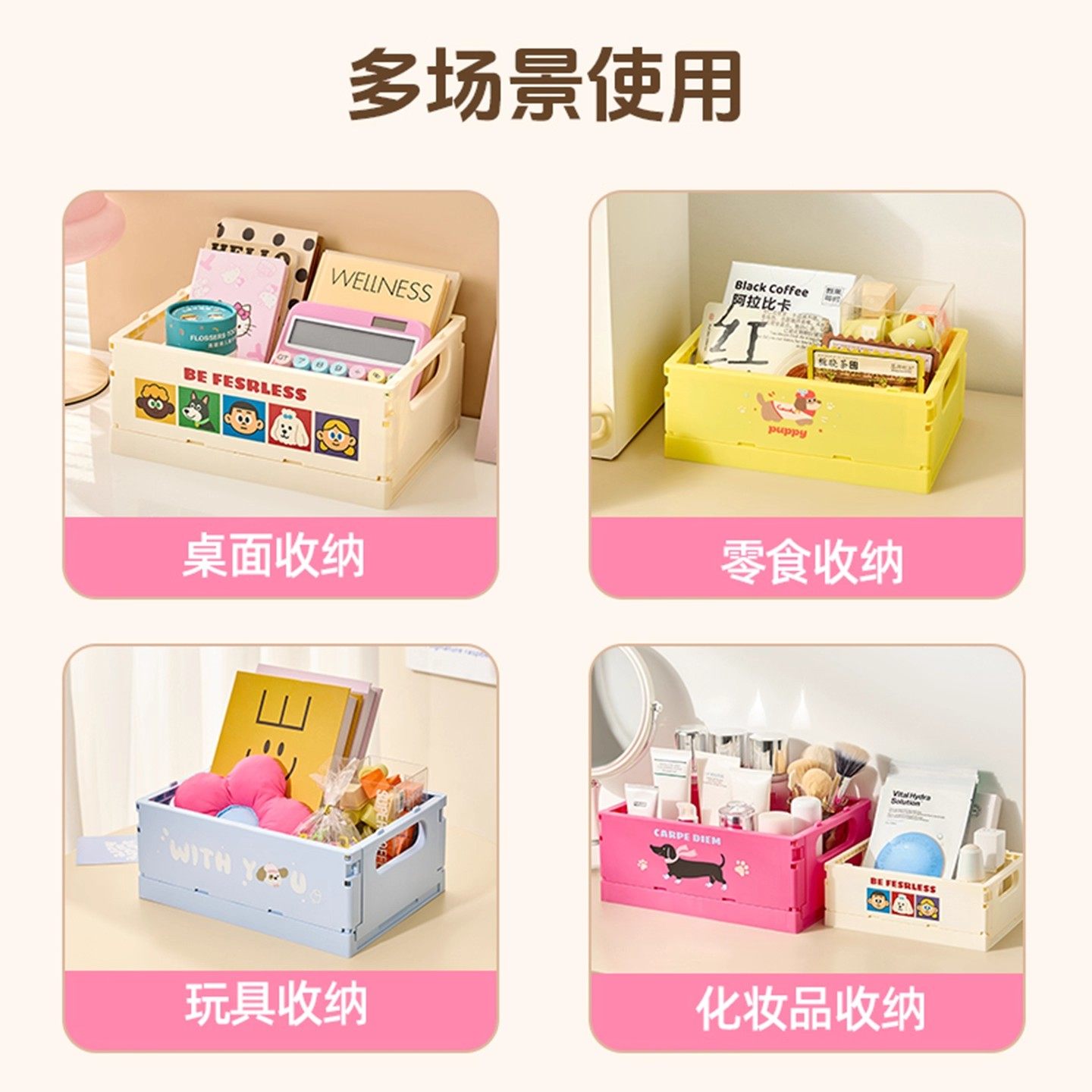 高颜值可折叠桌面收纳筐家用杂物整理盒化妆品文具零食可堆叠储物