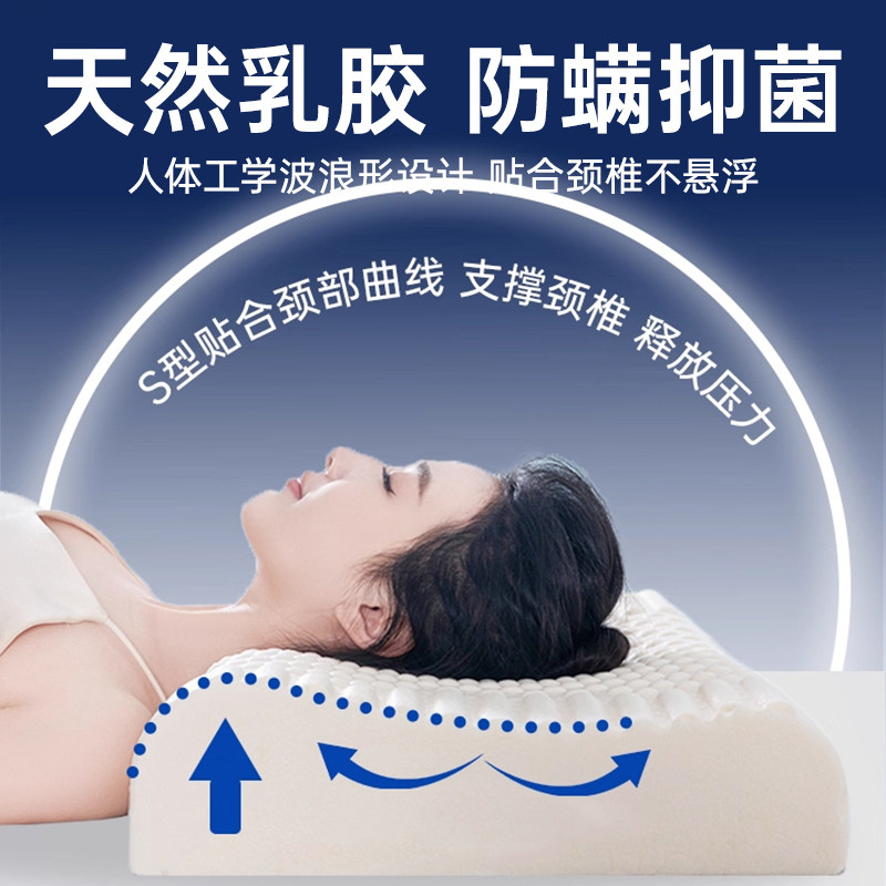 正品天然乳胶枕头护颈椎助睡眠睡觉专用硅胶橡胶枕芯一对家用