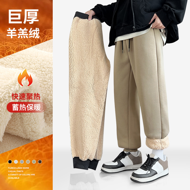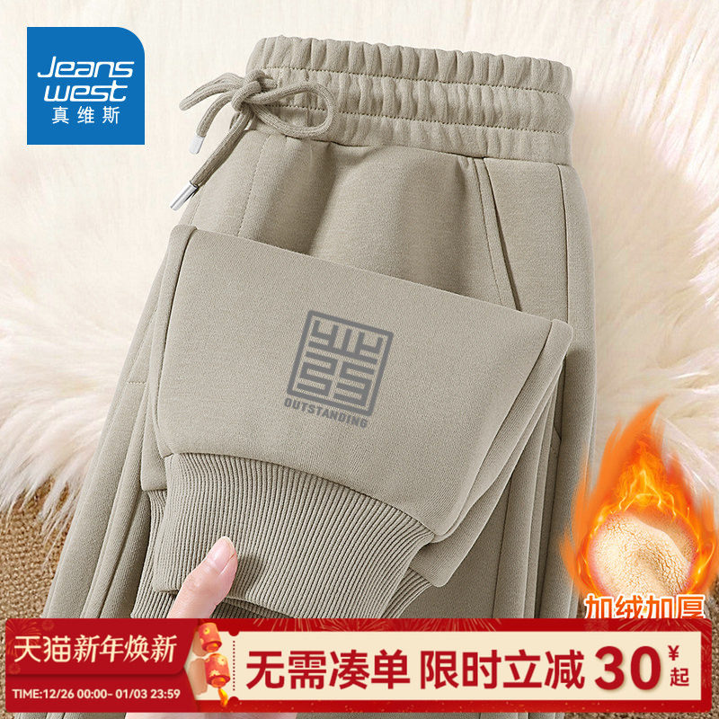 GV真维斯加厚绒男款裤子2025新款冬季男士休闲裤宽松保暖束脚裤C
