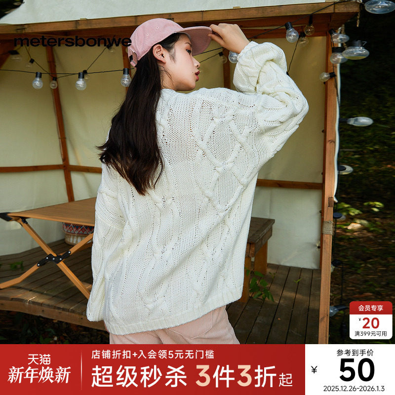 NVPVVA 秋冬新款学院风慵懒翻领绞花毛衣麻花宽松套头LOGO针织衫