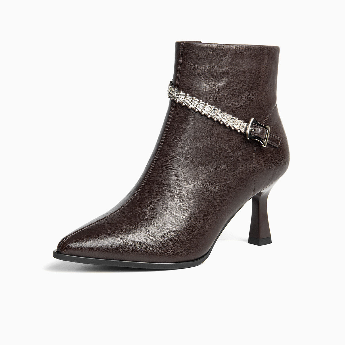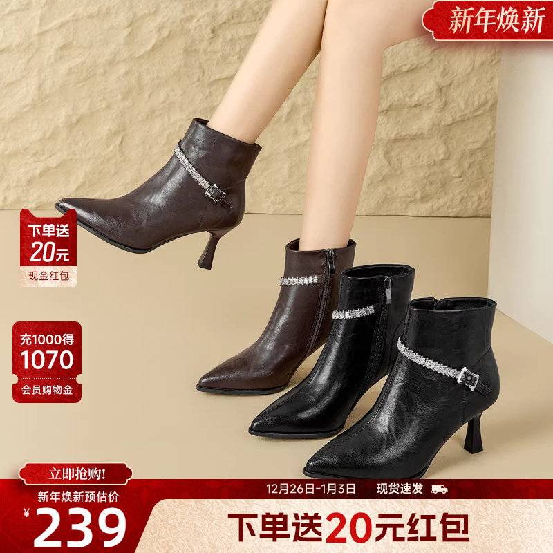 戈美其尖头细跟弹力靴女2025冬季新款瘦瘦靴休闲短靴个性时装靴