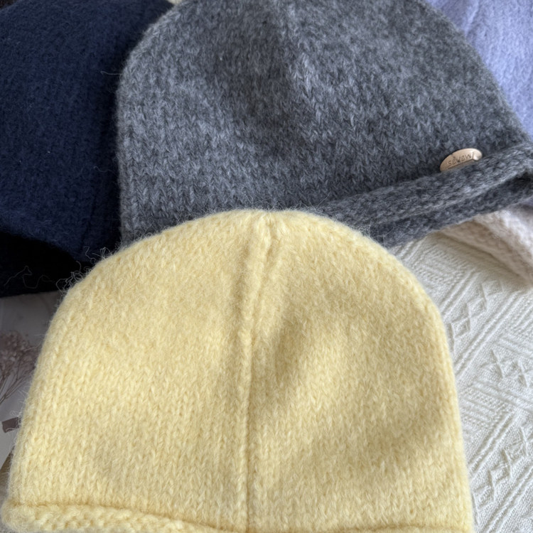 卷边毛线帽子女秋冬保暖冷帽韩版短款针织帽紫色灰色黑色藏青色