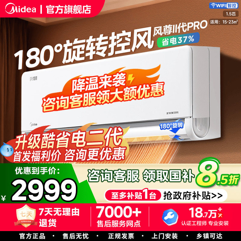 美的风尊二代pro空调大1.5匹一级变频冷暖两用家用挂机官方旗舰店