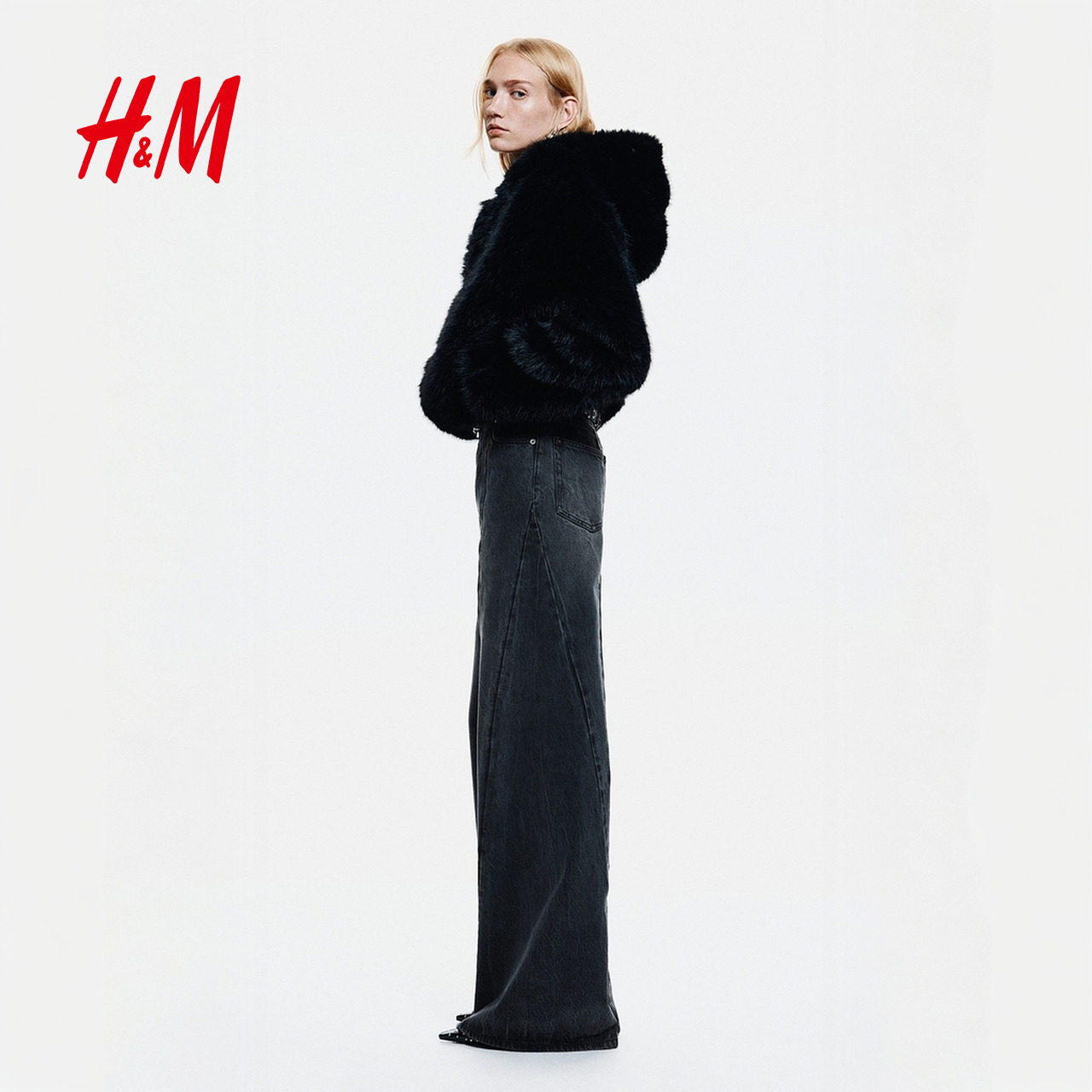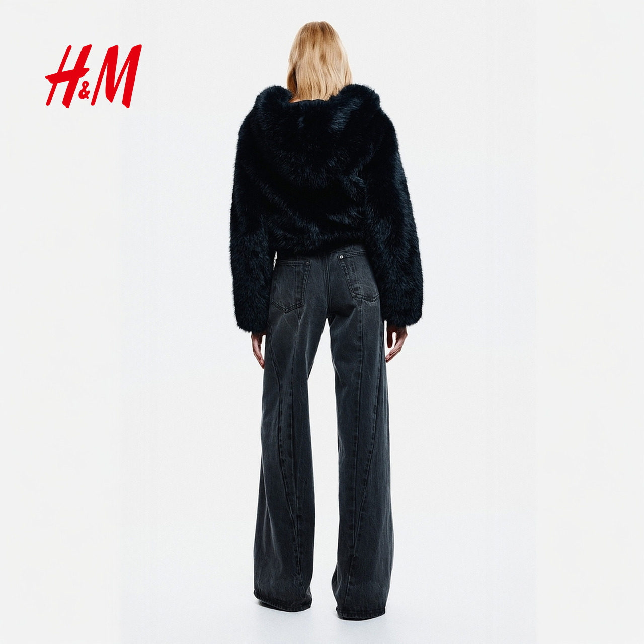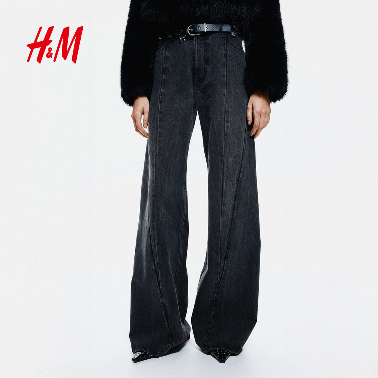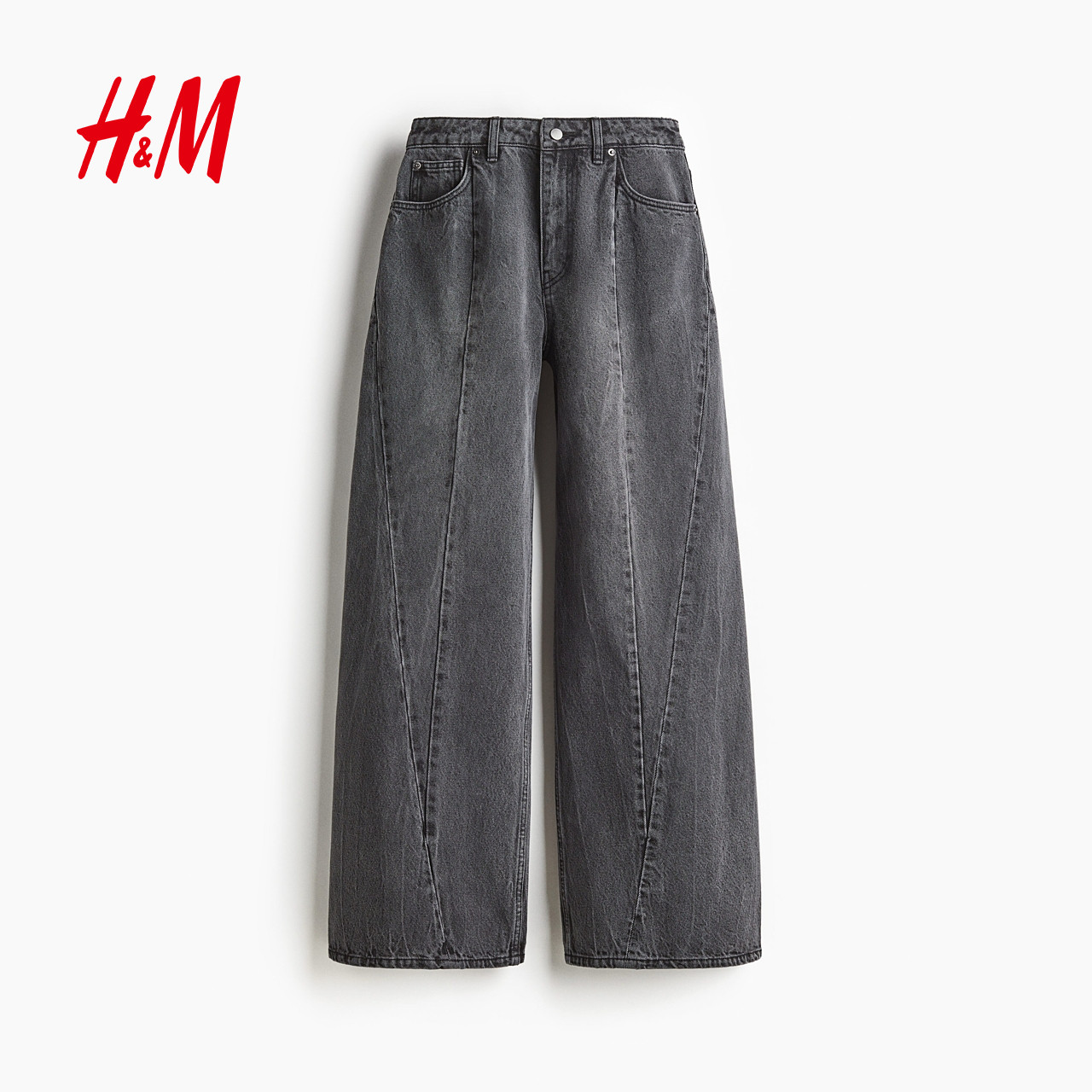 HM女装牛仔裤2025年新款直筒复古牛仔裤接缝设计潮流长裤1309684